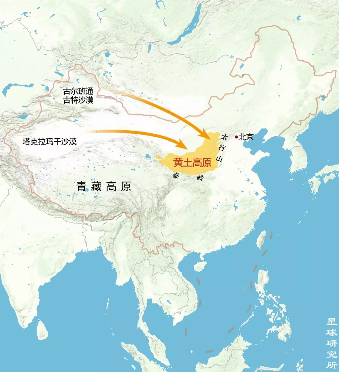 (黄土高原范围示意图,依据@尤联元等著《中国地貌》,制图@刘昊冰/星球研究所)