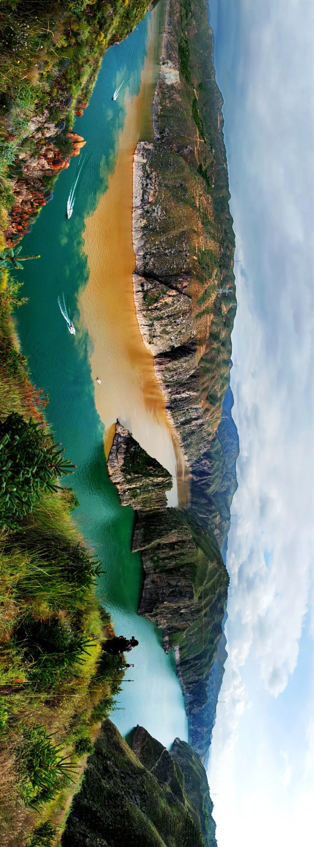(请将手机横屏观看,洮河与黄河交汇处,摄影师@慧霞)