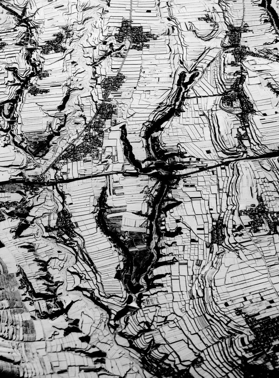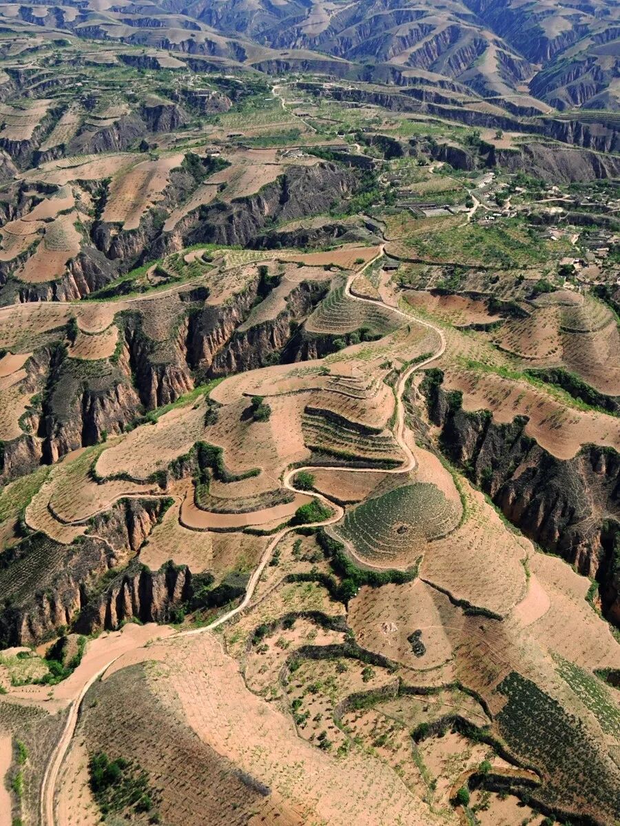 (甘肃董志塬,号称天下黄土第一塬,四周为深切的沟谷,平坦的塬上有村庄和农田,摄影师@许兆超)