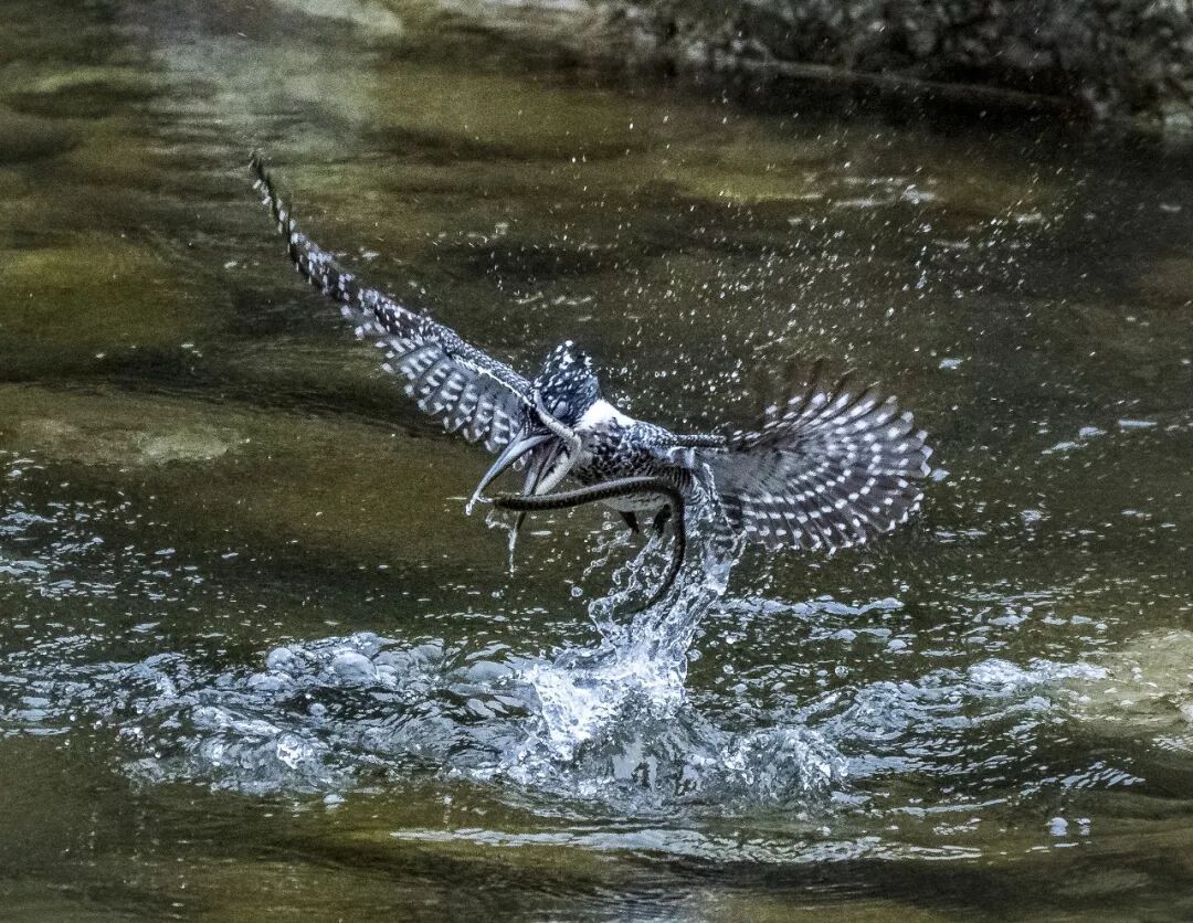 (冠鱼狗,第2张为冠鱼狗捕蛇的画面,摄影师@杨帆)