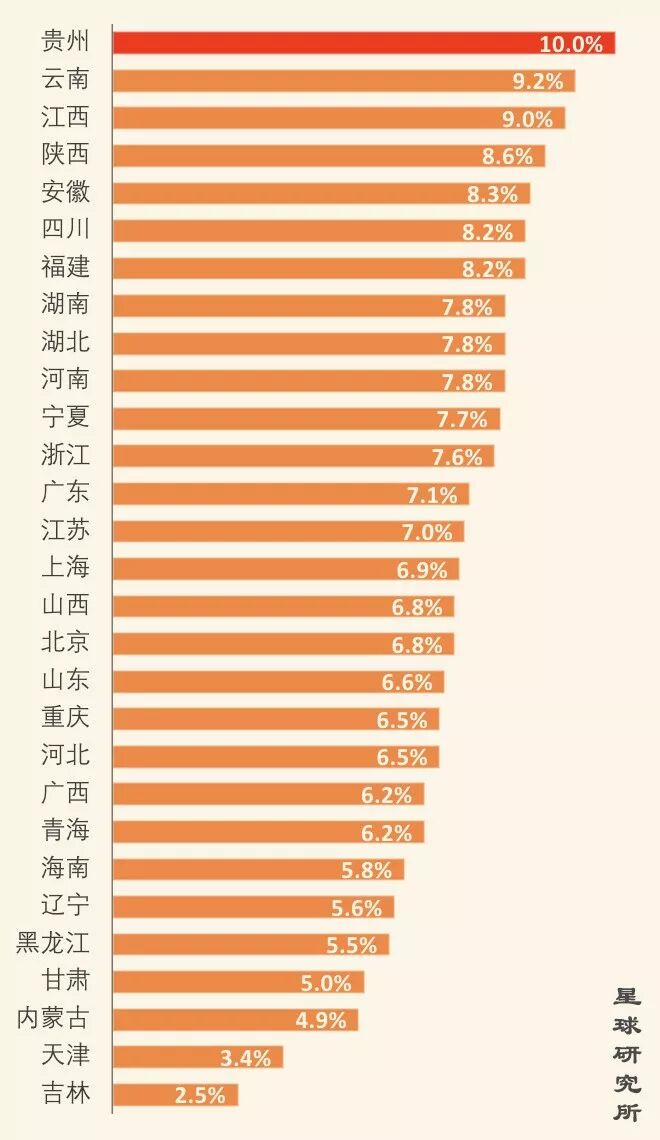 (2018上半年各省区GDP增速排名,数据来源:人民网,新疆、西藏未公布数据,未计算香港、澳门、台湾,制图@陈风子/星球研究所)
