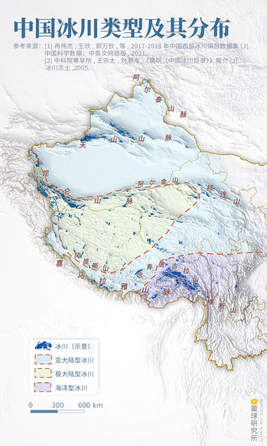(中国冰川类型及其分布范围,制图@陈志浩/星球研究所)