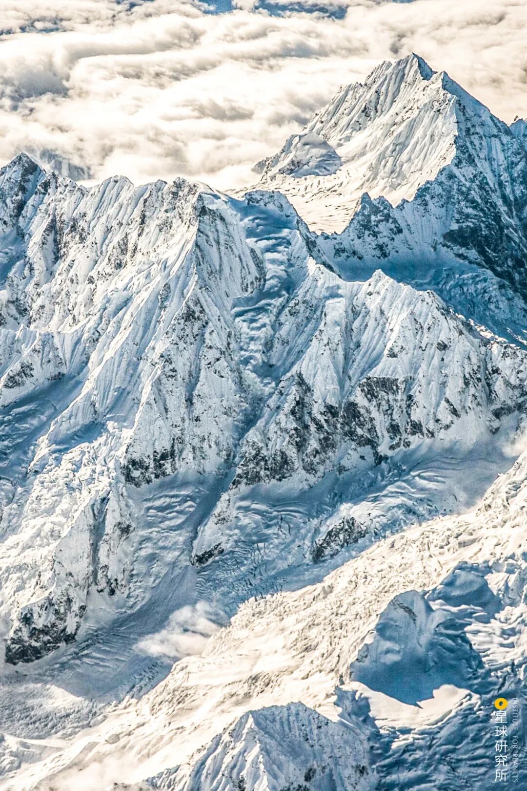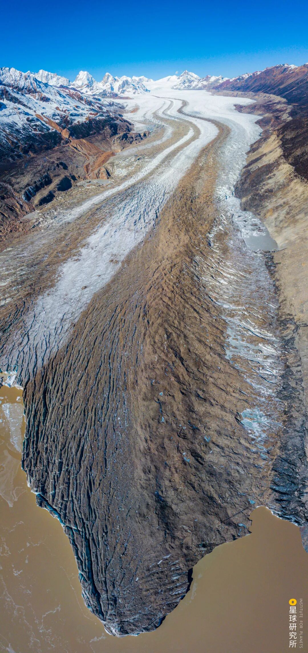 (念青唐古拉山东段雅弄冰川,可见几条蜿蜒的冰中碛,摄影师@李珩)