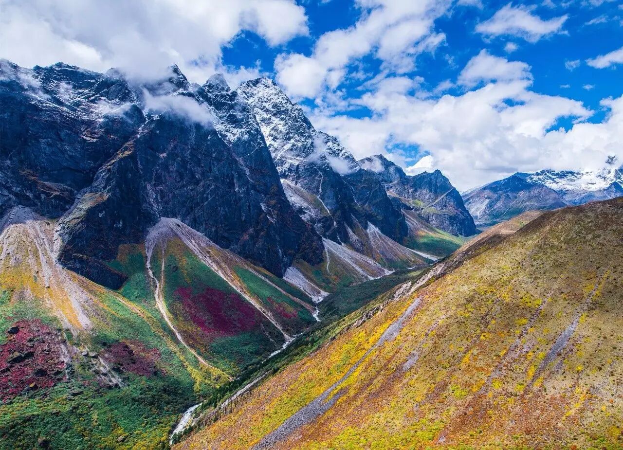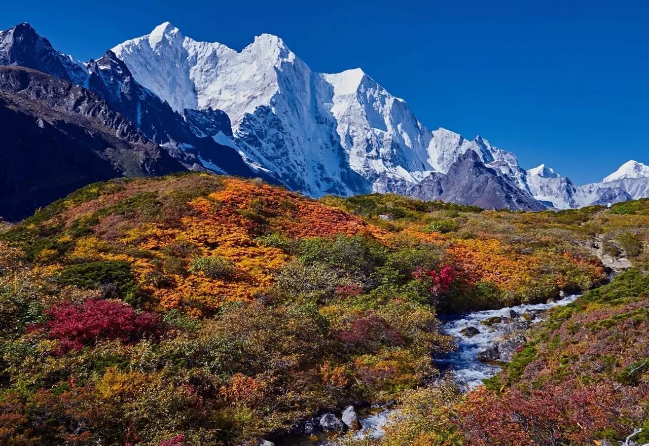 (热嘎营地与巴当营地之间的秋色,左侧为珠穆朗卓诸峰,摄影师@田忠智)