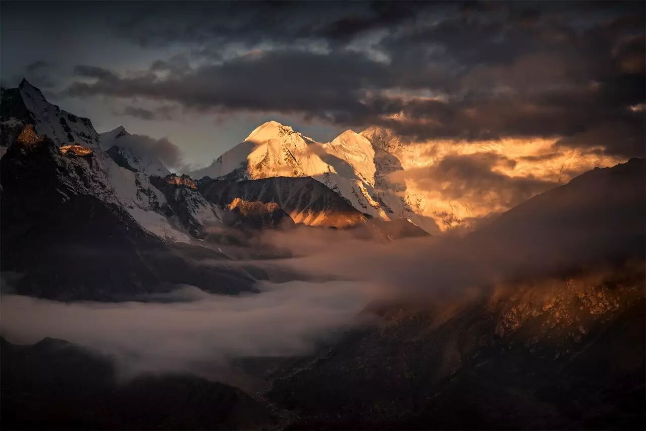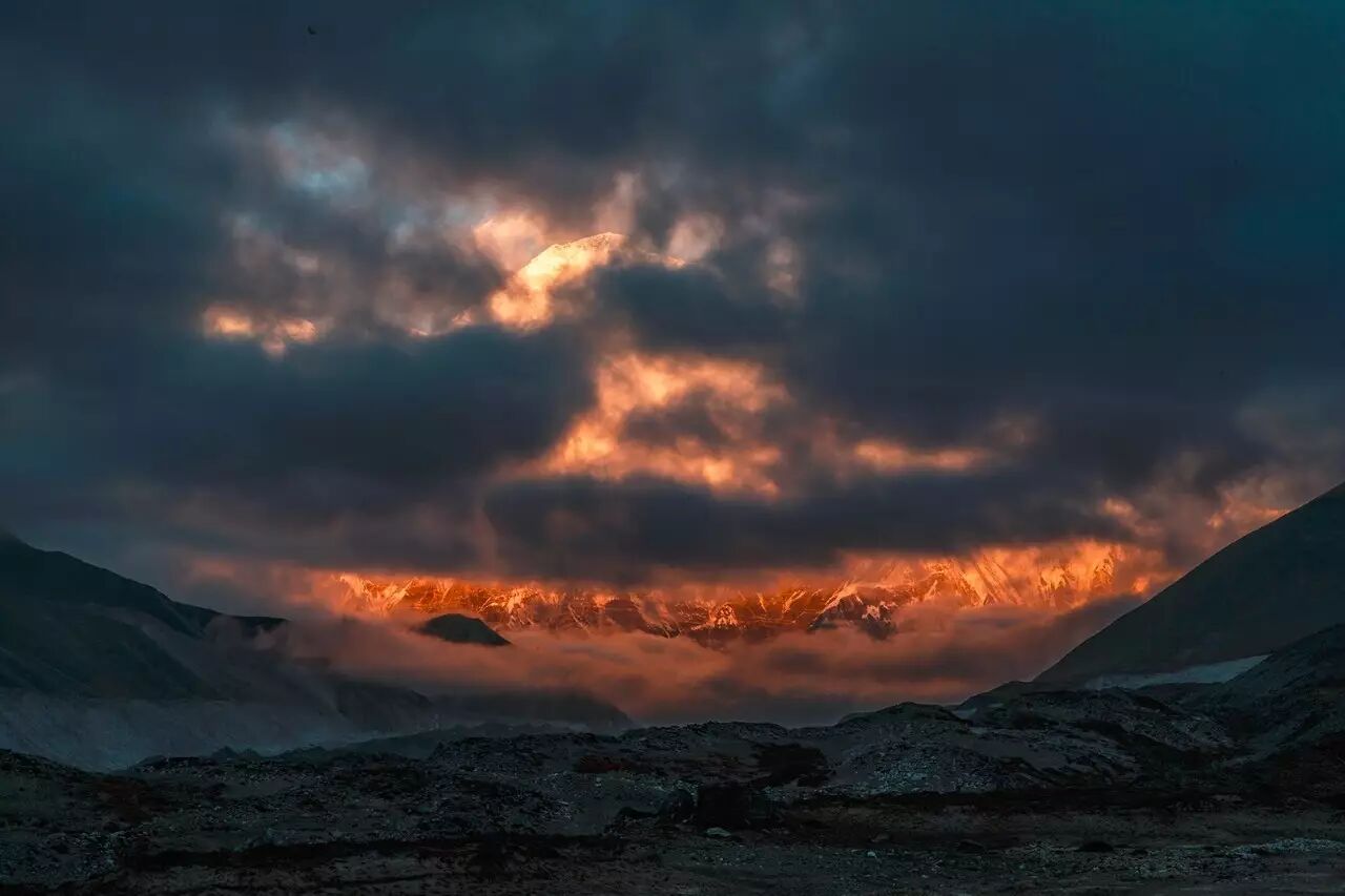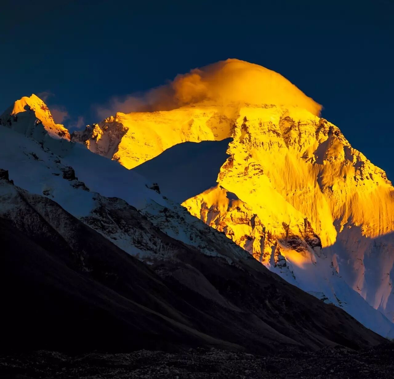 (珠峰东坡的日出金山,摄影师@曲子华)