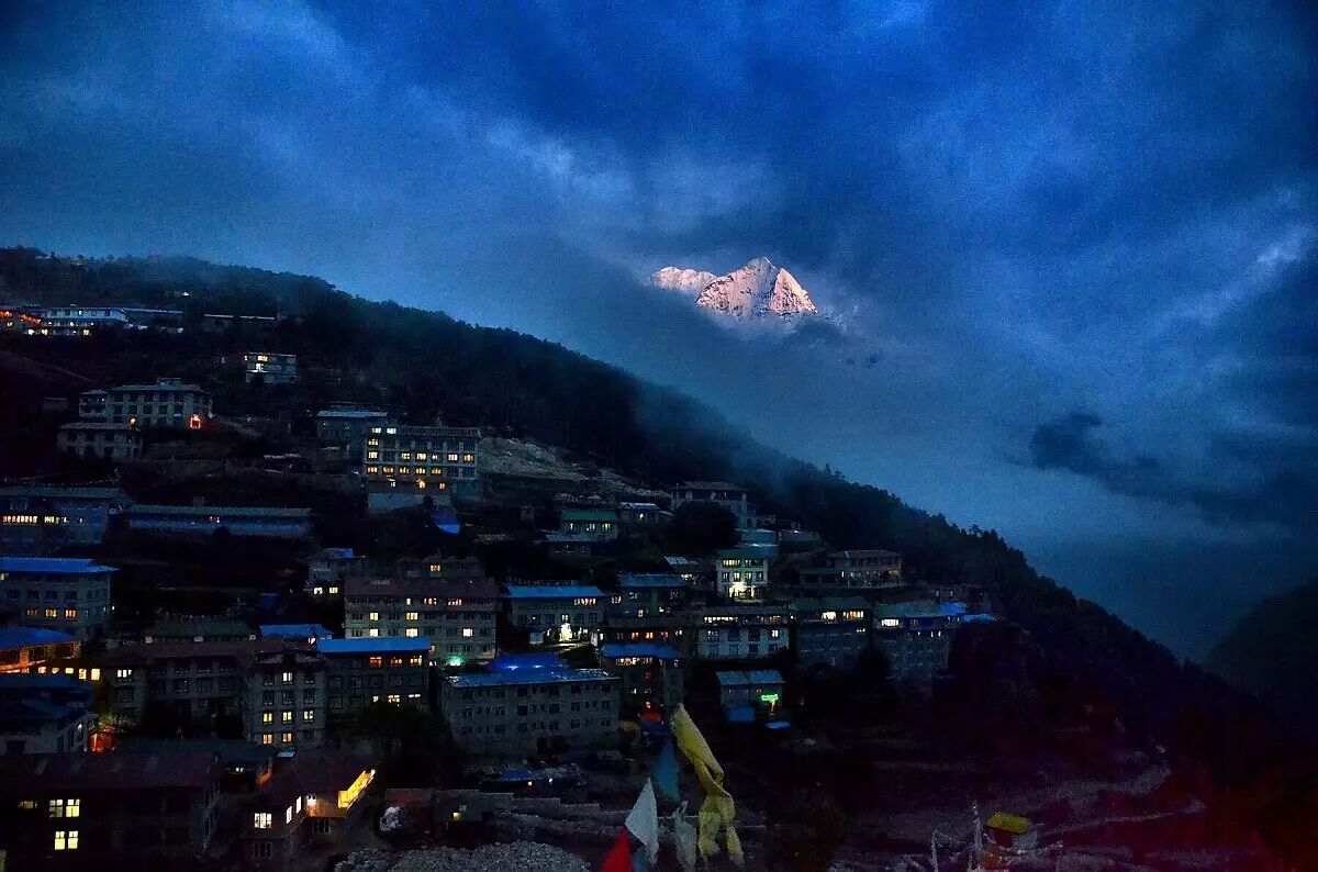 (请将手机横屏观看,对面山峰最高者为洛子峰,摄影师@宗京宁)