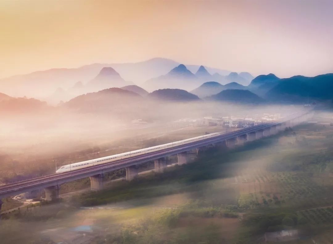 (贵广高铁穿越桂林农田,摄影师@黄一骏)