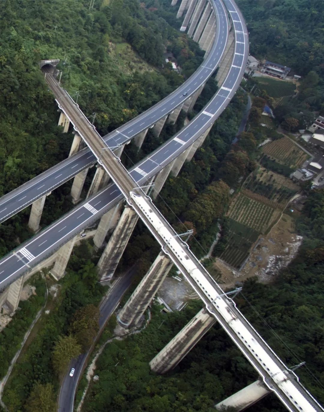 (刚从隧道中钻出的贵广高铁,幸福源水库大桥,摄影师@刘慎库)