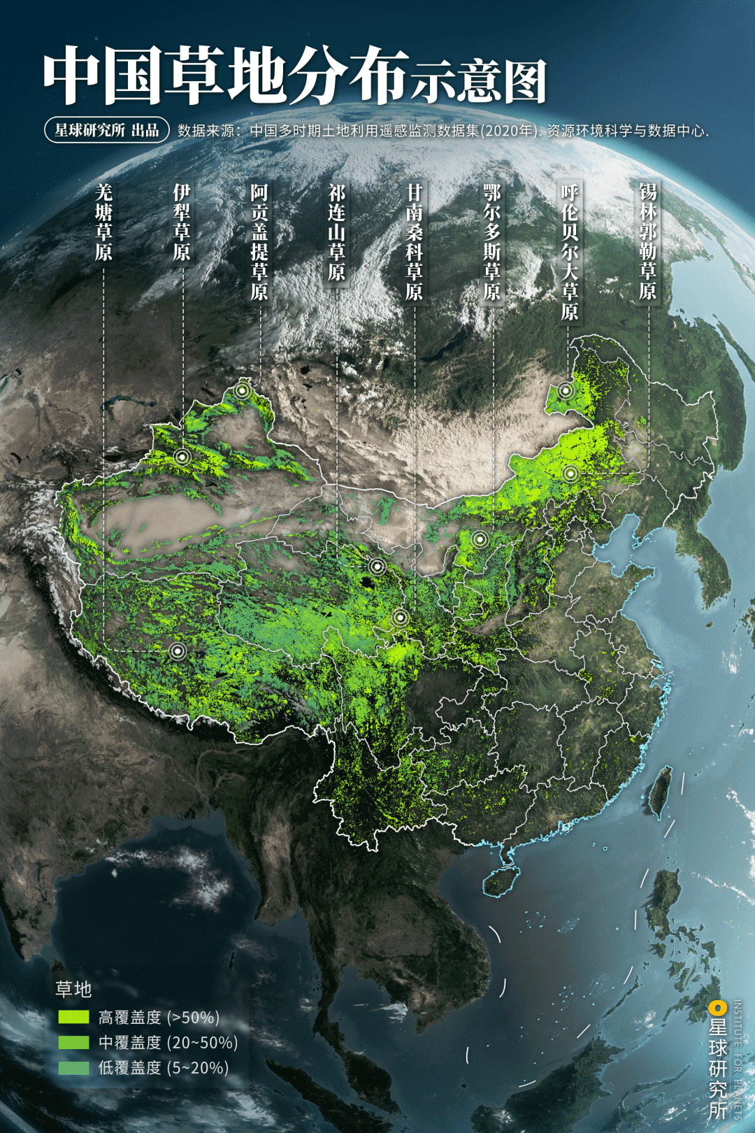(中国草地分布示意图,制图@郑艺/星球研究所)
