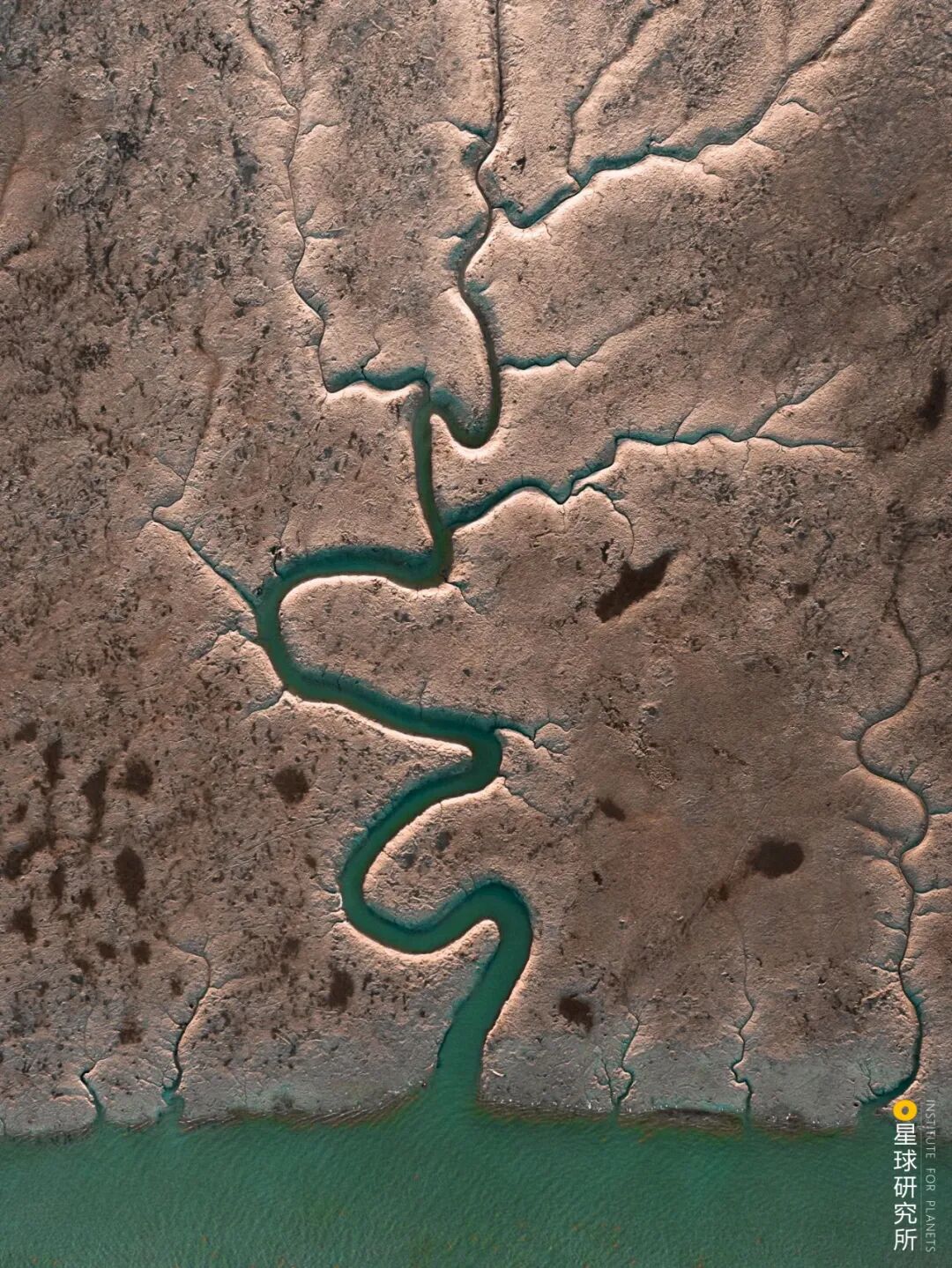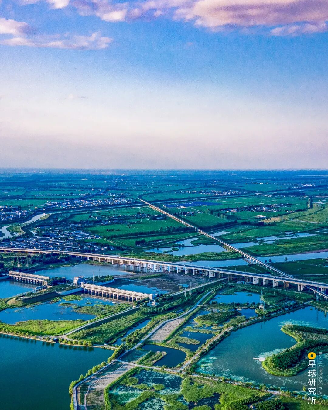 (辽河闸,辽河汇入渤海,在滨海平原上形成多级分支,枝杈众多的河道与纵横的桥梁交错成复杂的网状,摄影师@王禹)
