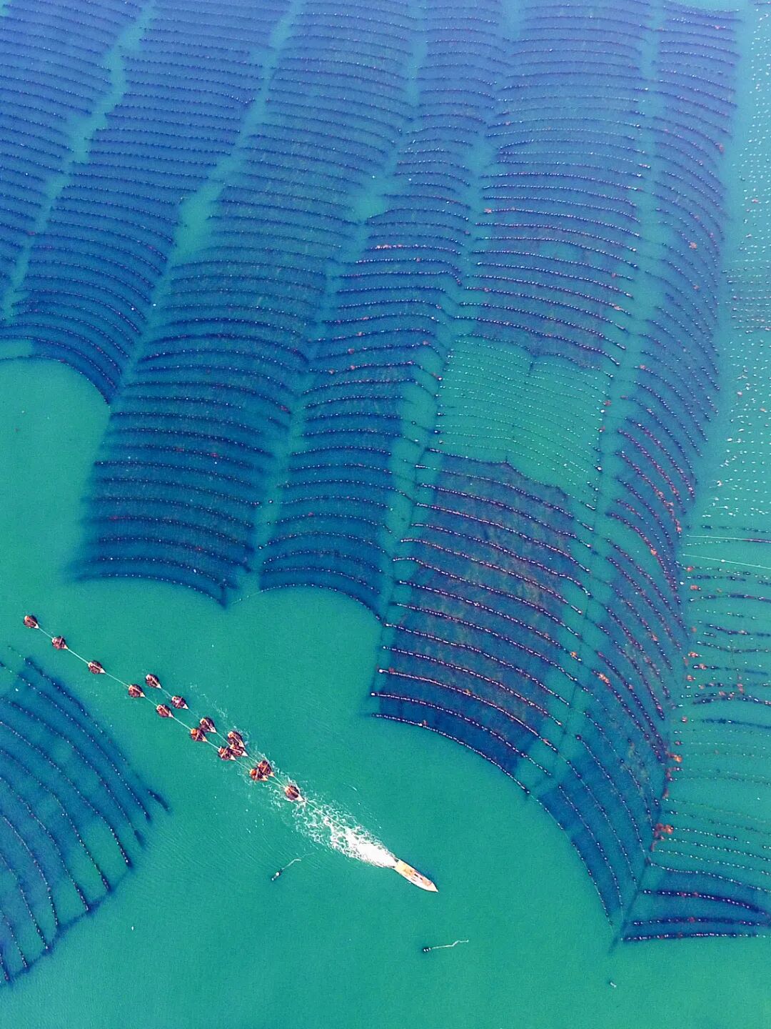 (大连黄泥川海域的海带养殖场,图片来源@VCG)