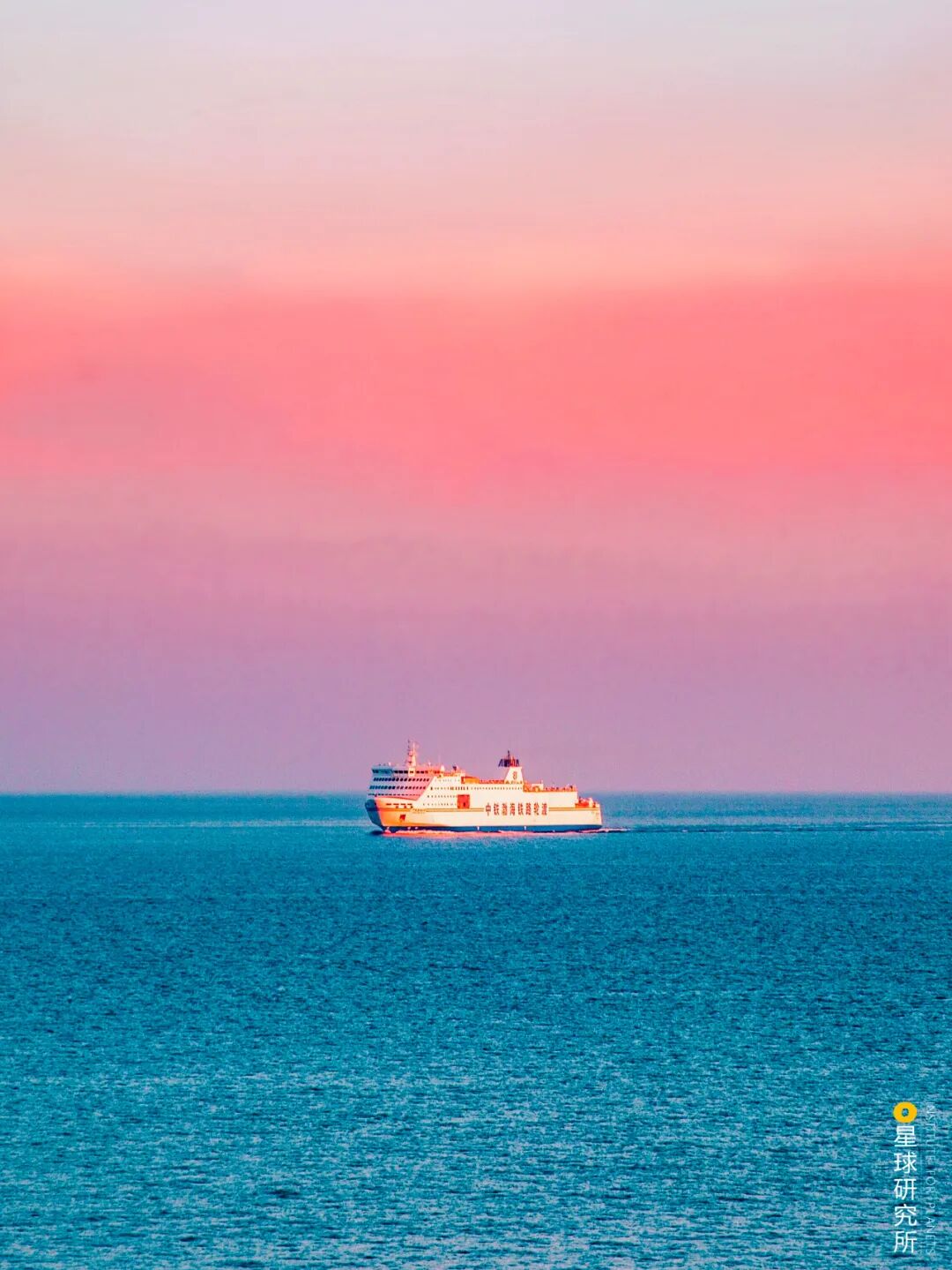 (清晨,渤海海面上,接近烟台港的烟大铁路轮渡,摄影师@吕杰琛)