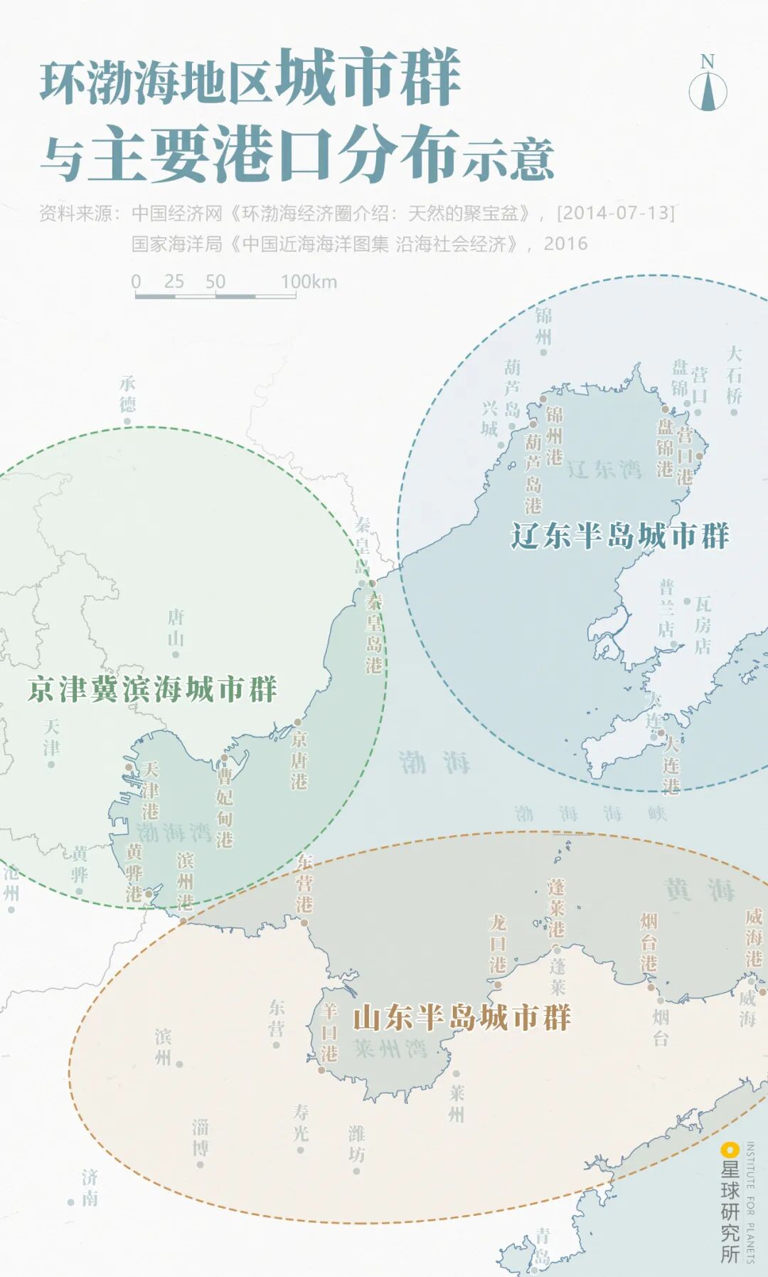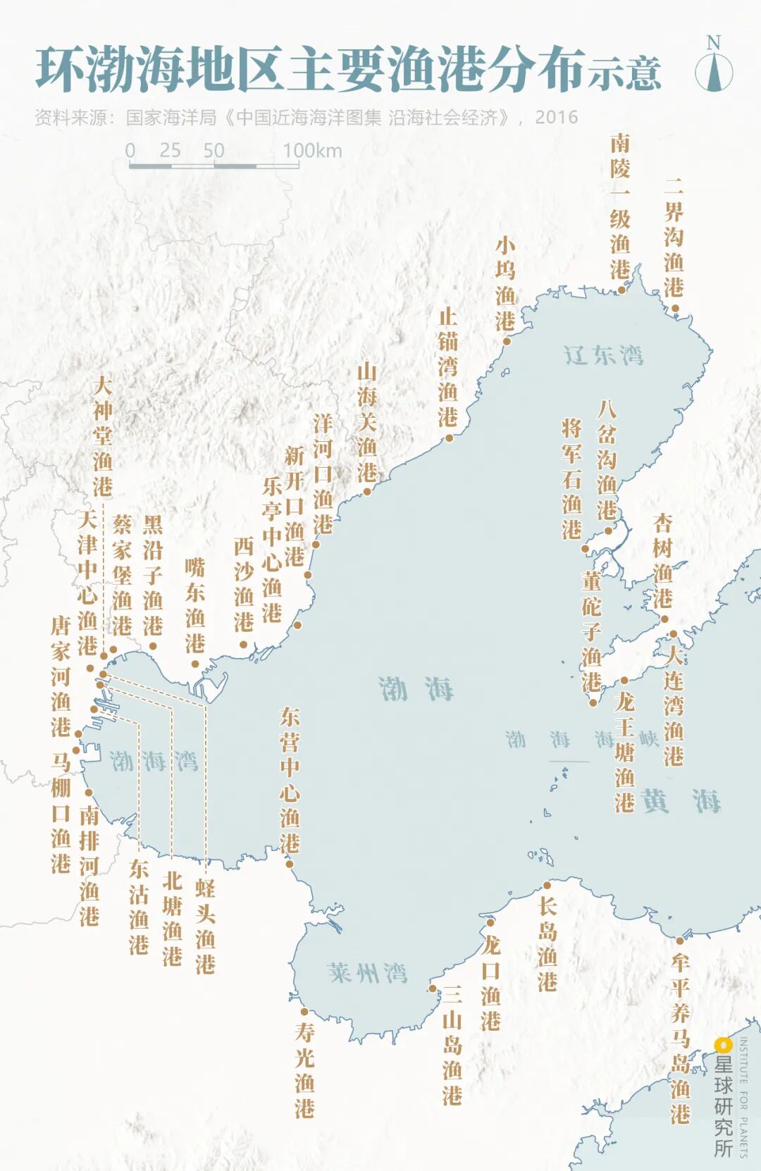 (渤海主要渔港分布示意图,制图@陈志浩&郑伯容/星球研究所)