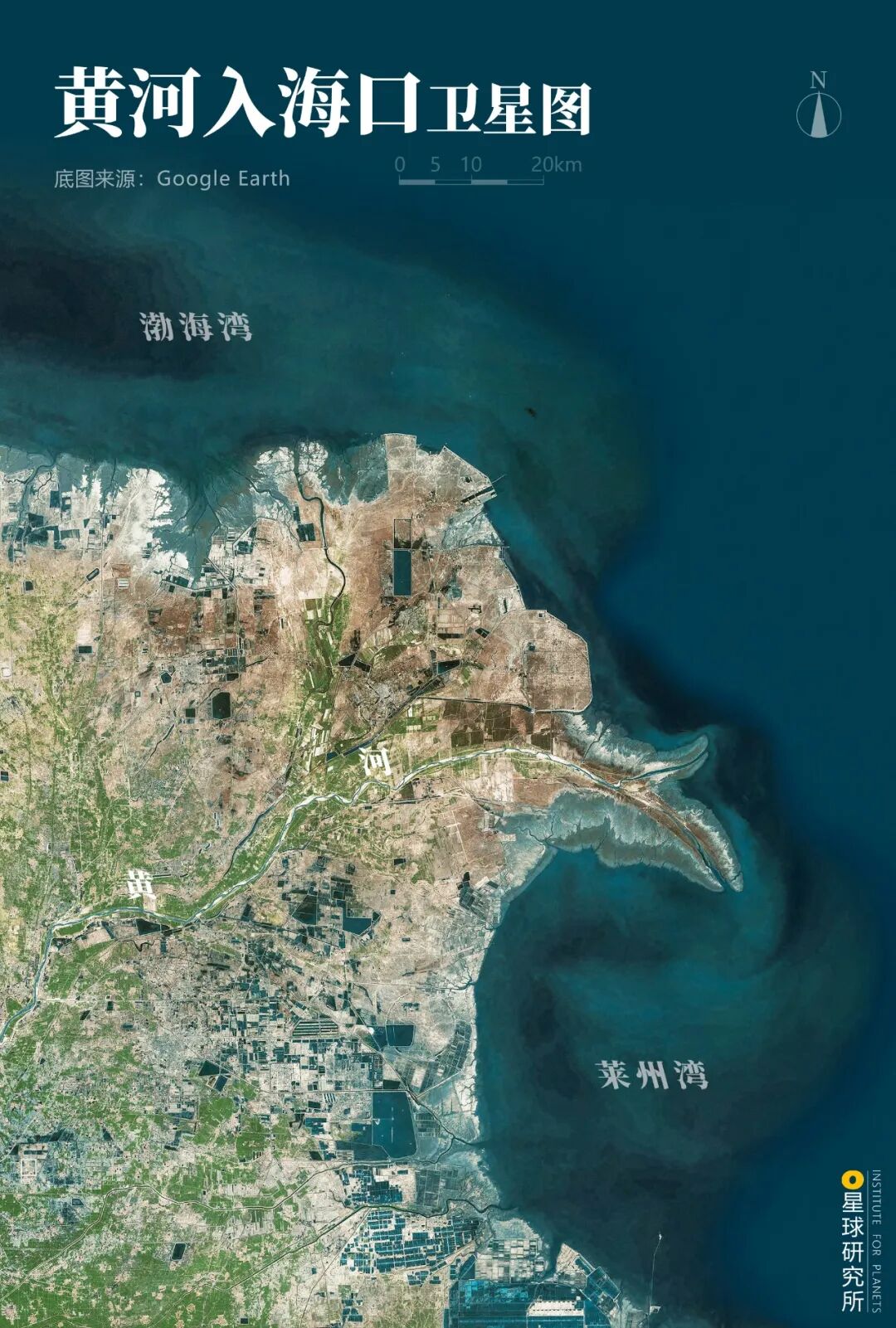 (黄河入海口卫星影像图,图片来源@谷歌地球)