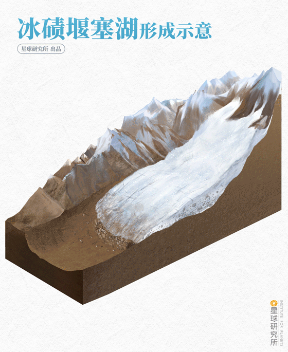 (冰碛堰塞湖成因示意图,制图@张琪月/星球研究所)