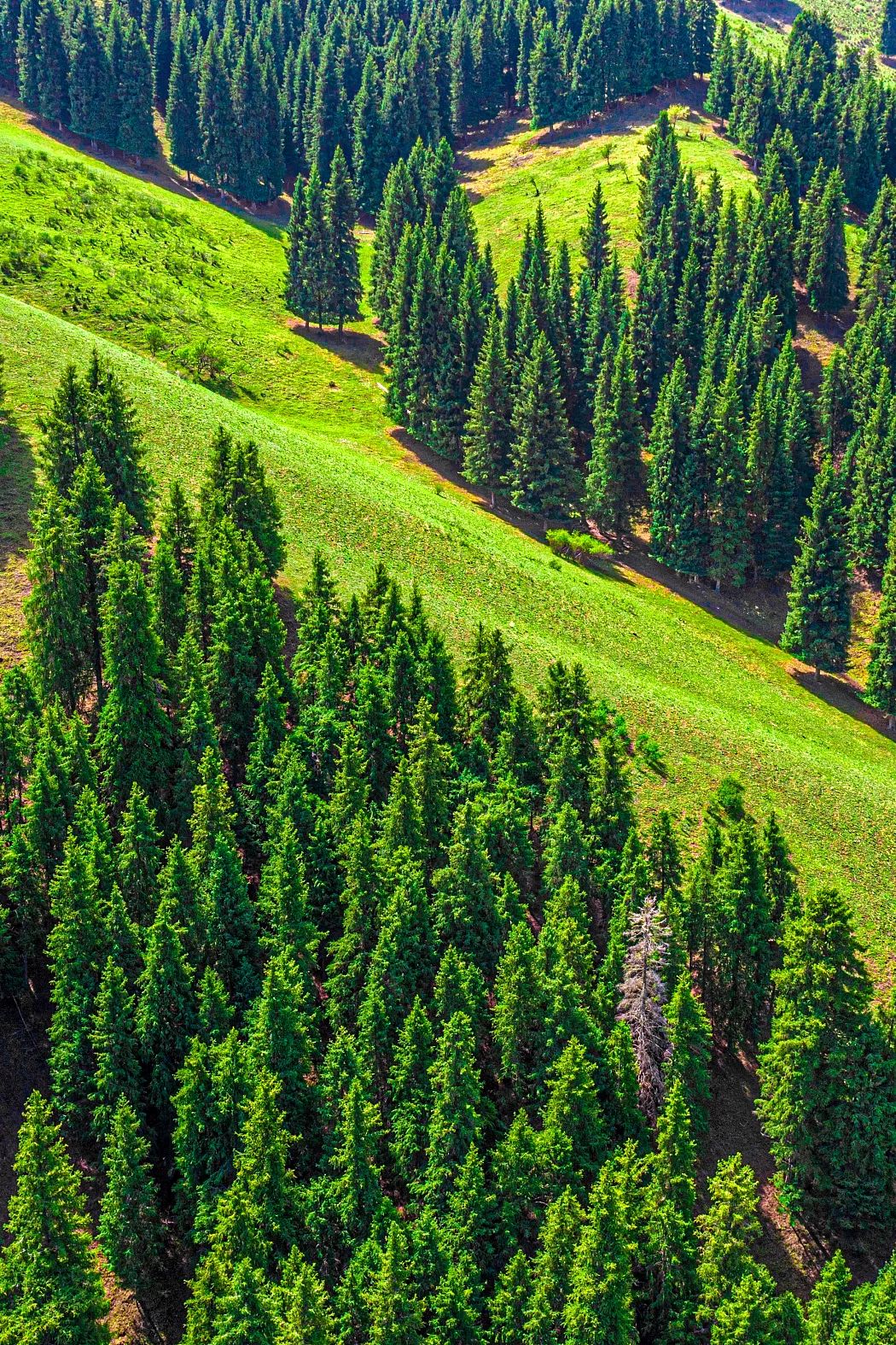 茵茵的绿草与葱郁的森林逐渐占领山坡
