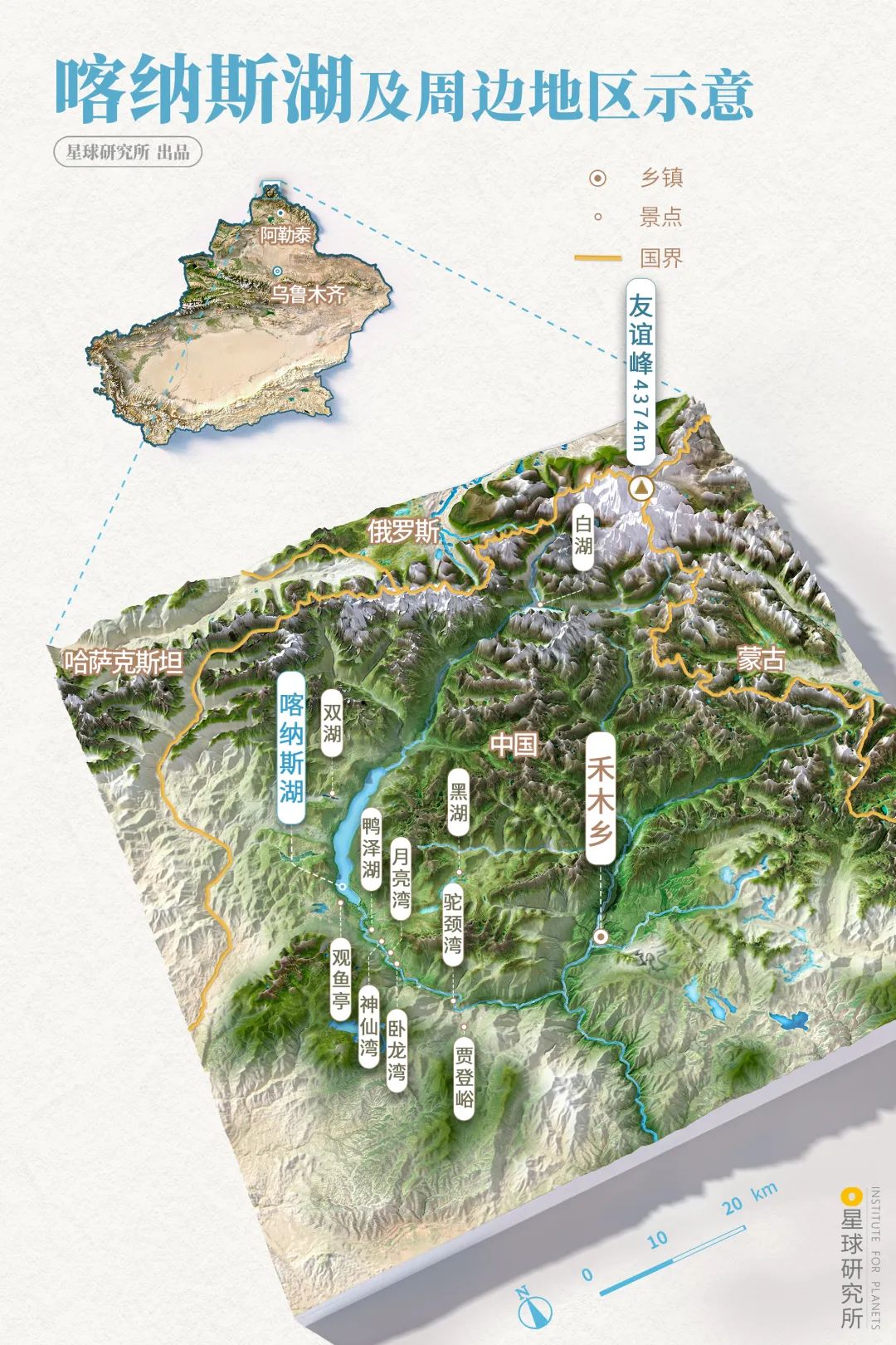 (喀纳斯湖及周边地区示意,制图@刘遥/星球研究所)