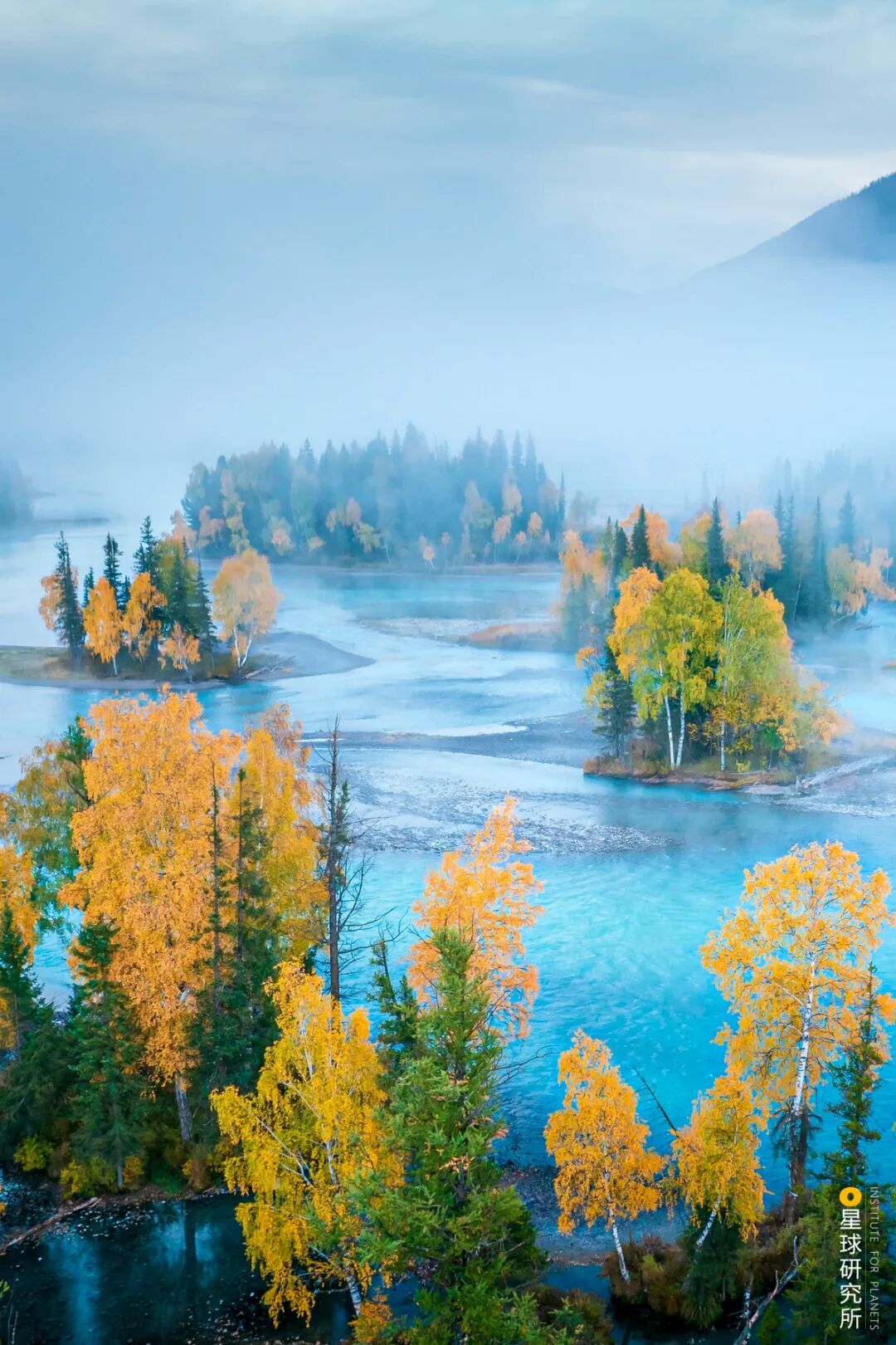 (请横屏观看,晨雾下的喀纳斯河神仙湾,摄影师@陈小羊)