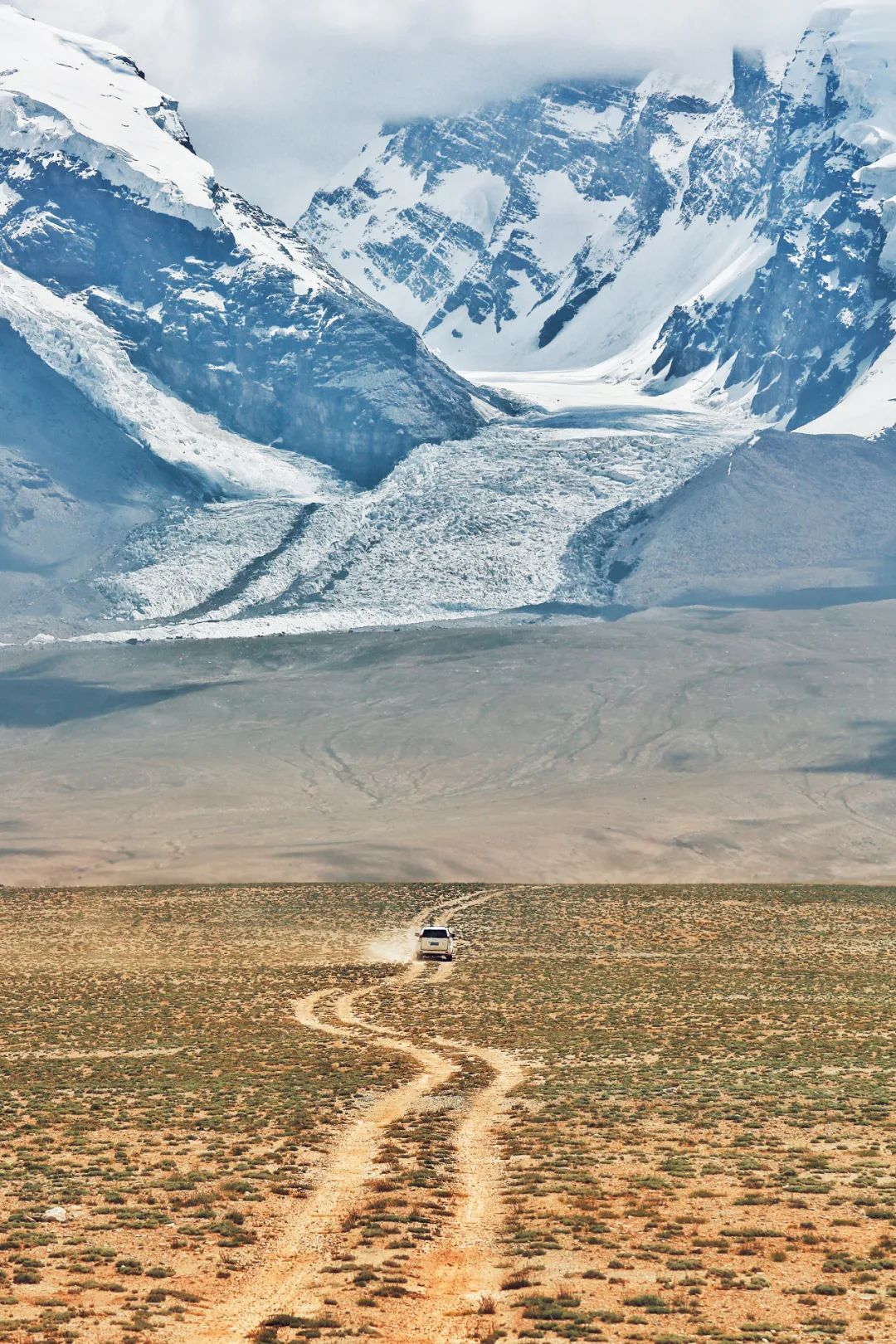 (慕士塔格脚下牧民的牧场围栏,只有一条轮廓,仿佛随时会被积雪掩埋,摄影师@小强先森)