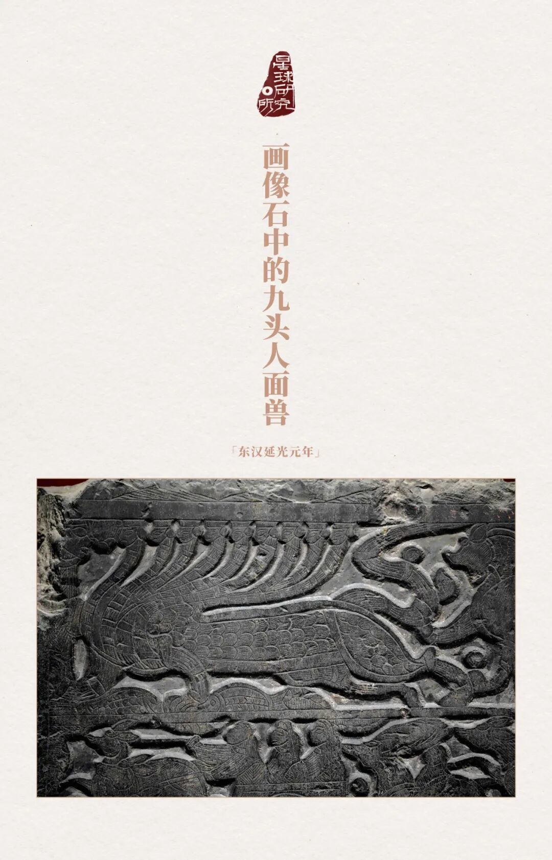 (东汉延光元年画像石中的九头人面兽,九头人面兽又称开明兽,传说为昆仑九道门的守门神兽,其原型是神兽陆吾,摄影师@杨虎)