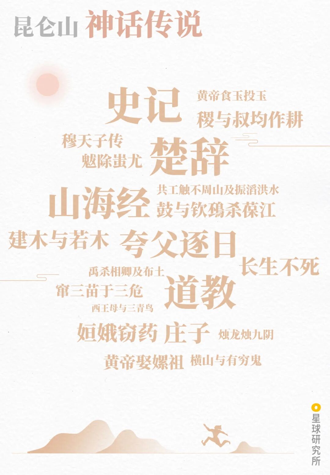 (自《山海经》以来,大量的古代著作都提到昆仑,围绕传说中的昆仑,出现了许多神话故事,甚至其中很多本和昆仑没有关系,是后人附会之作。传说中的昆仑,似乎有着一种独特的吸引力,制图@赵榜/星球研究所)