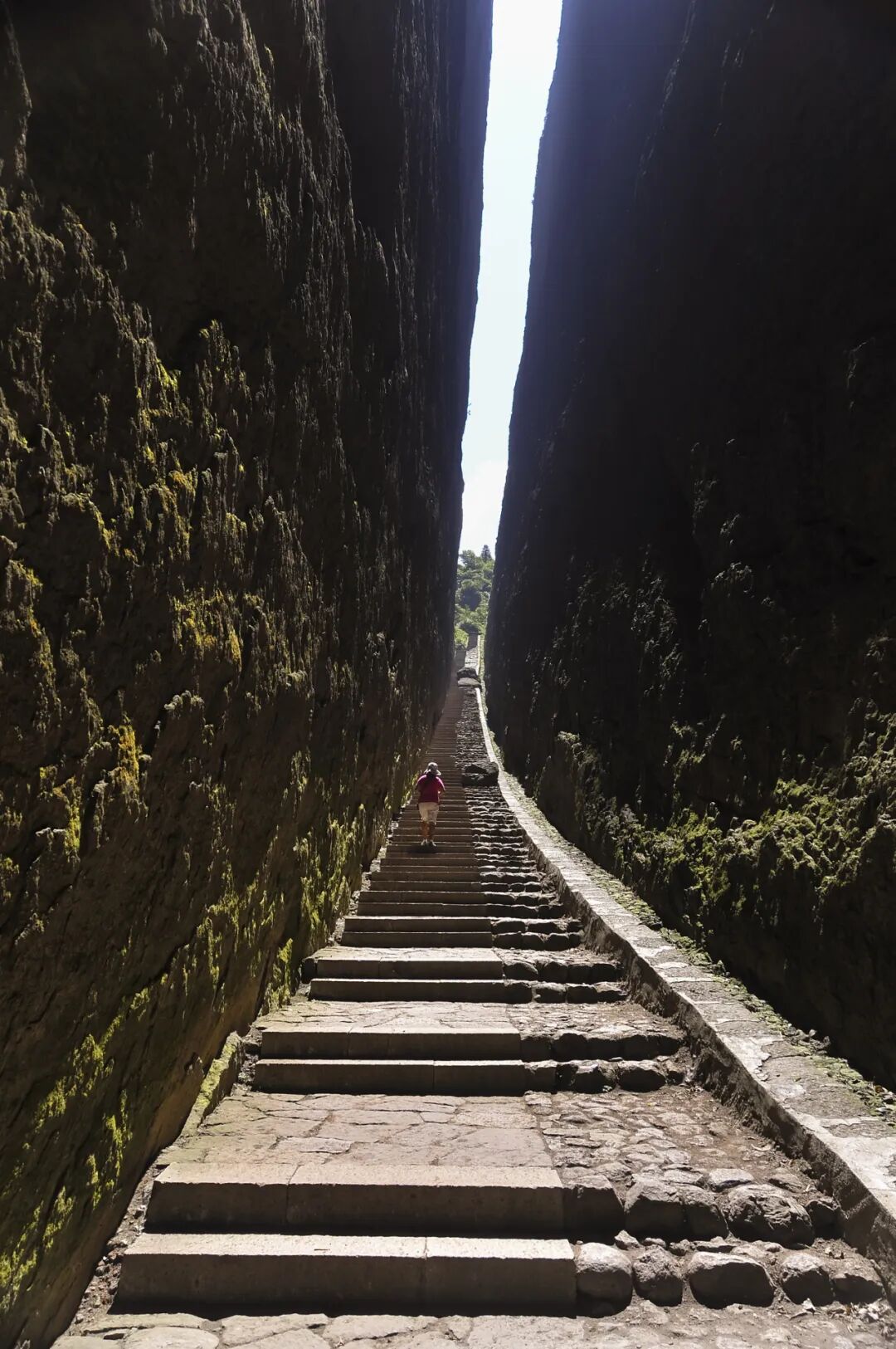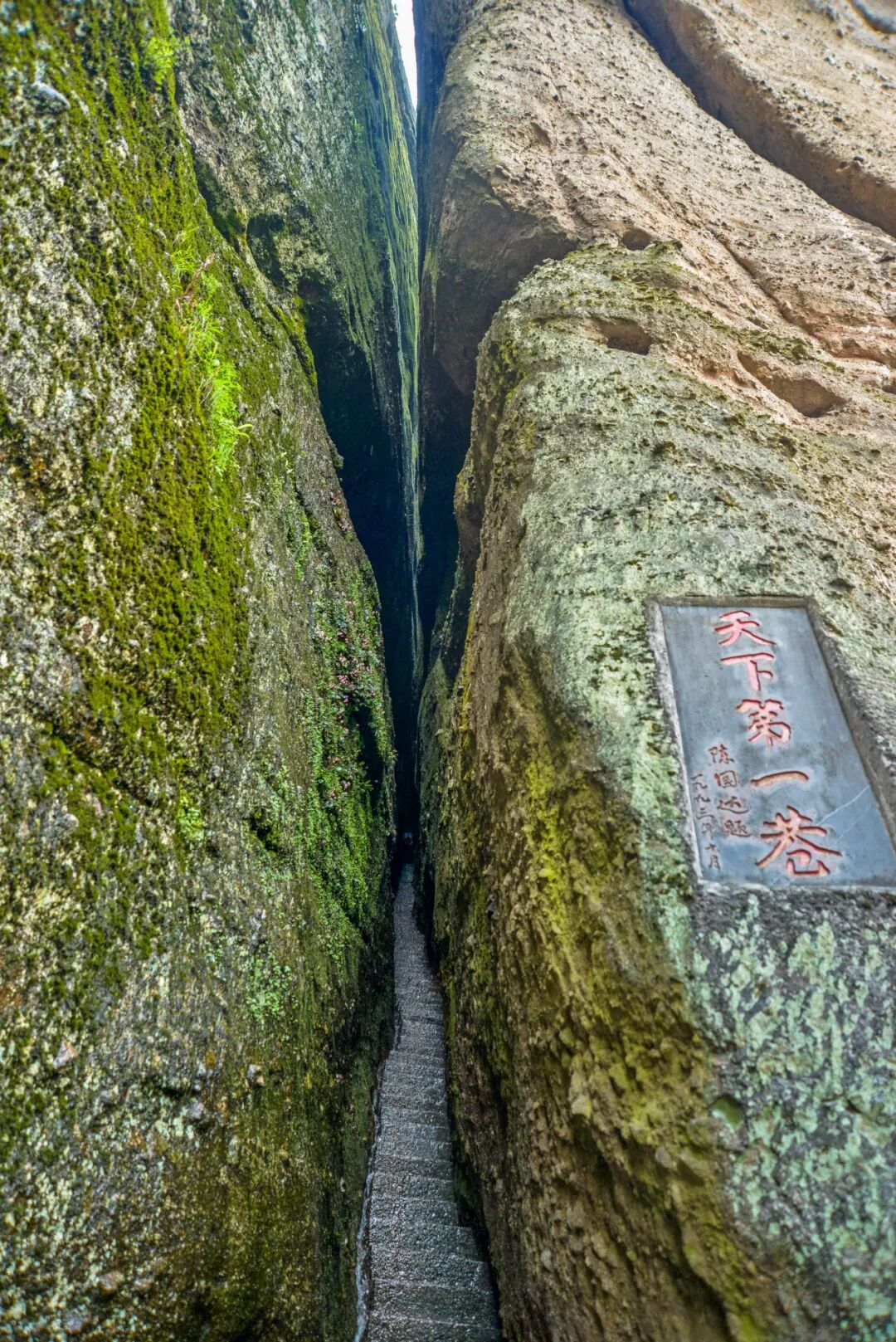 (线谷及巷谷发育初期,崖高谷窄仅容一线天光透入,故而得名一线天;图为江郎山小弄峡;图片源自@VCG)