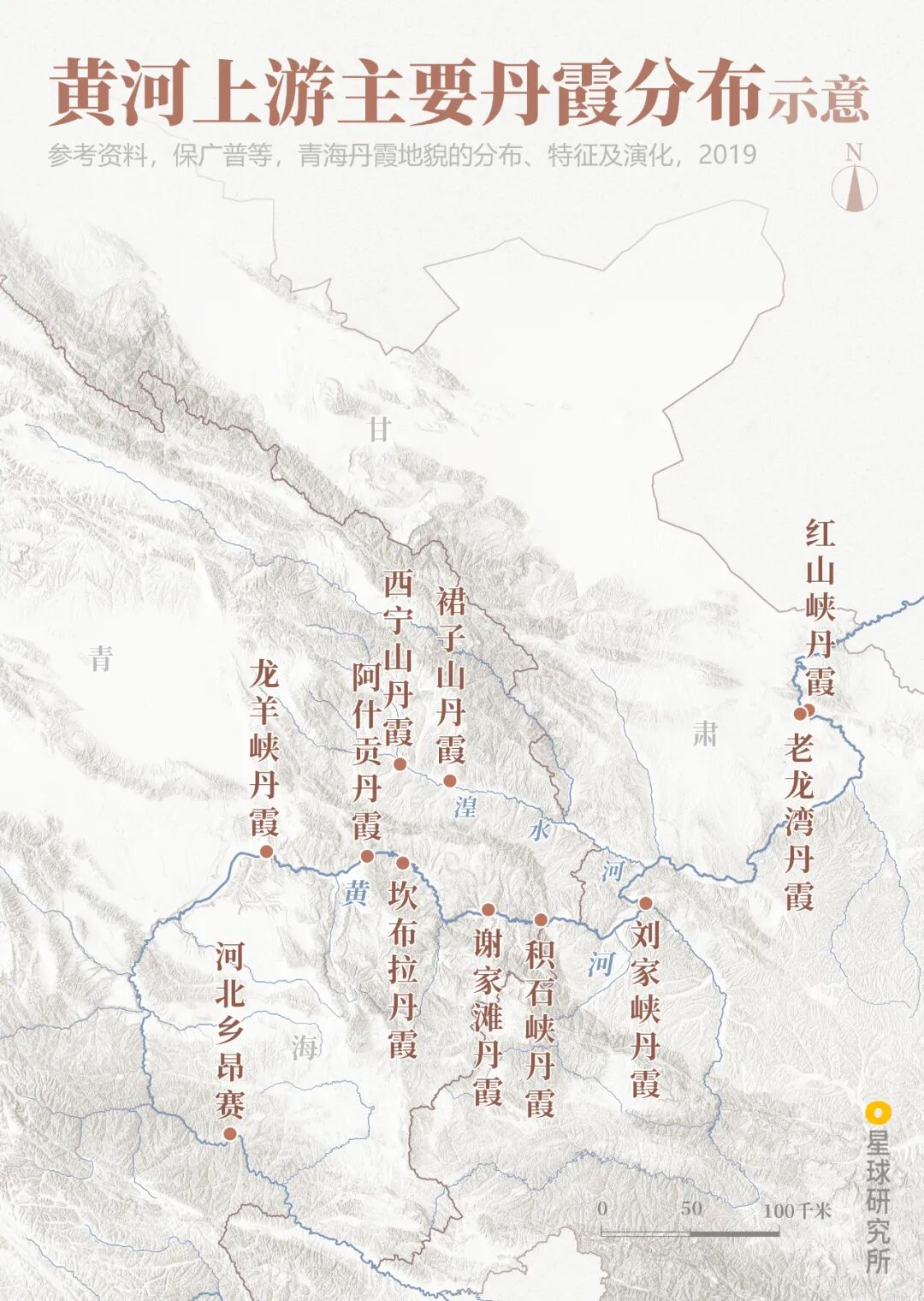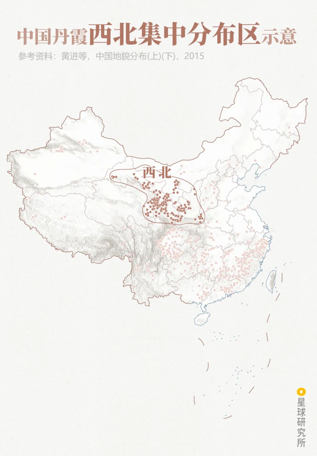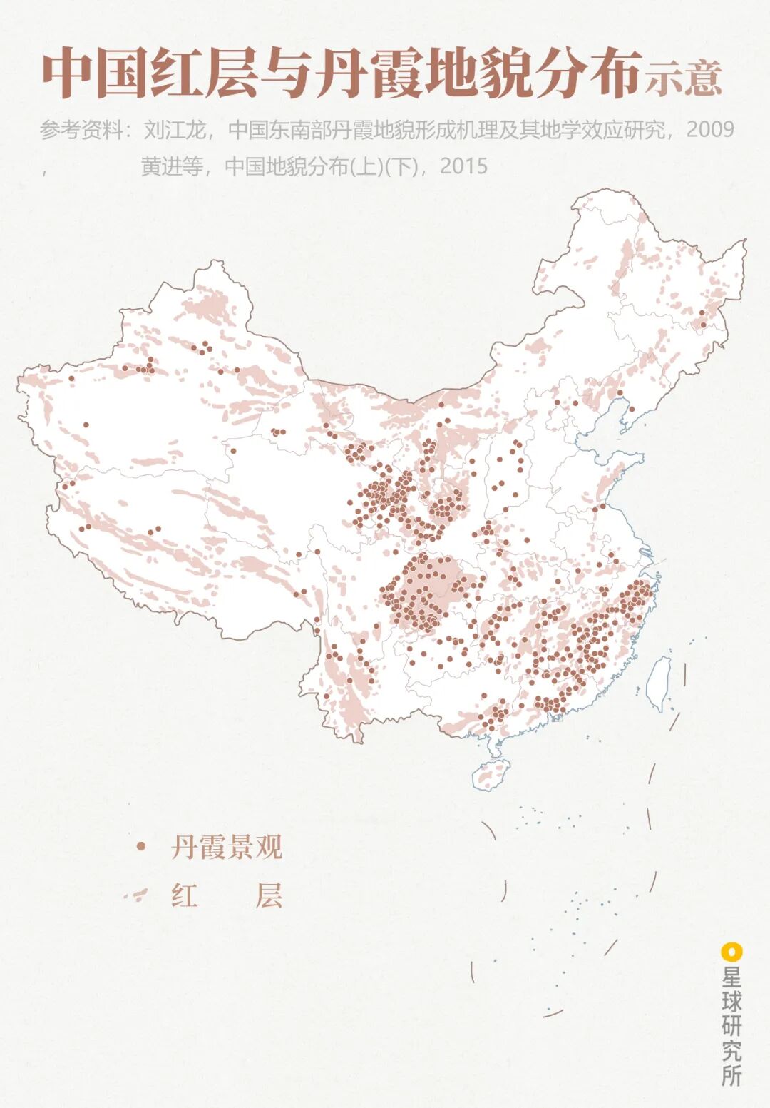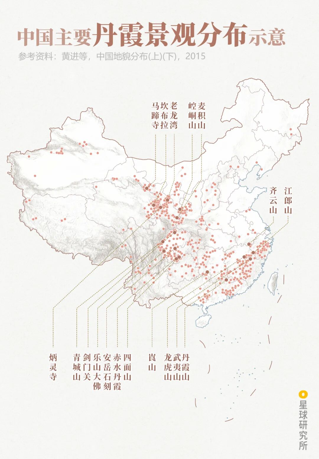 (中国主要丹霞景观分布示意;制图@陈景逸&郑伯容/星球研究所)