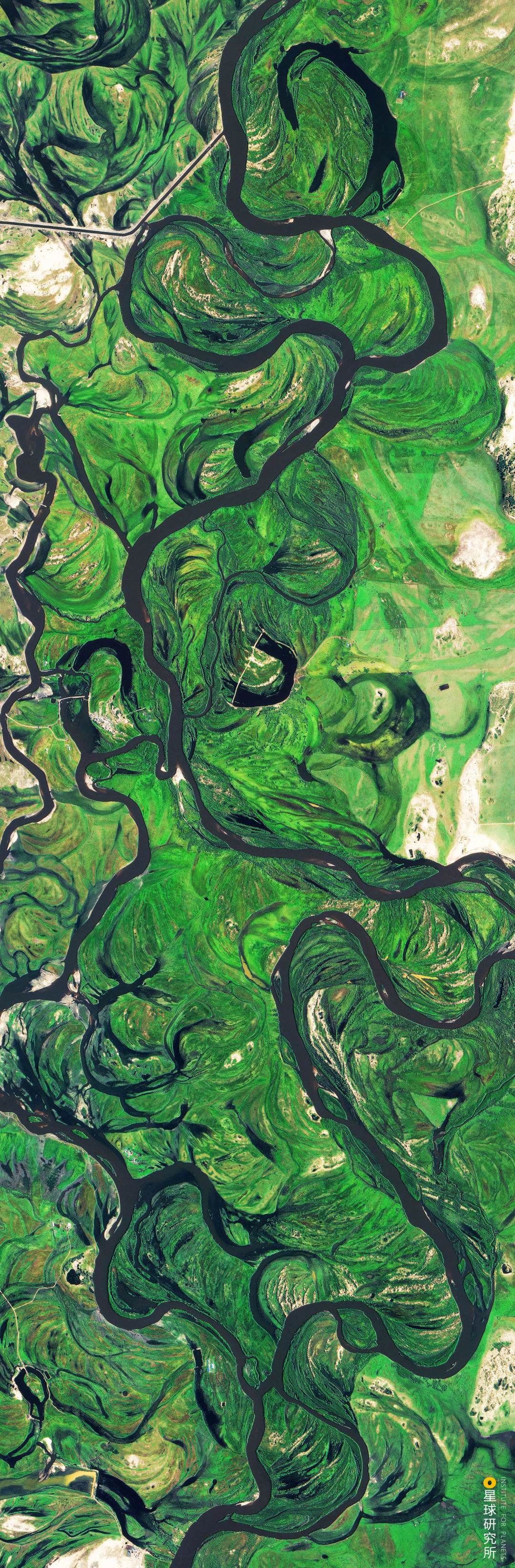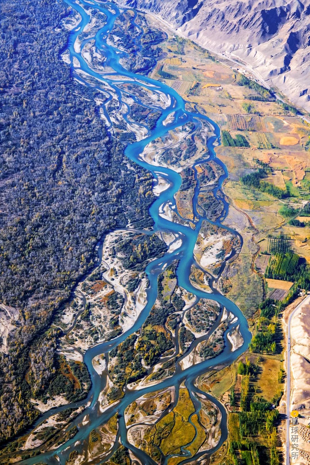 在广袤河滩上蜿蜒回旋