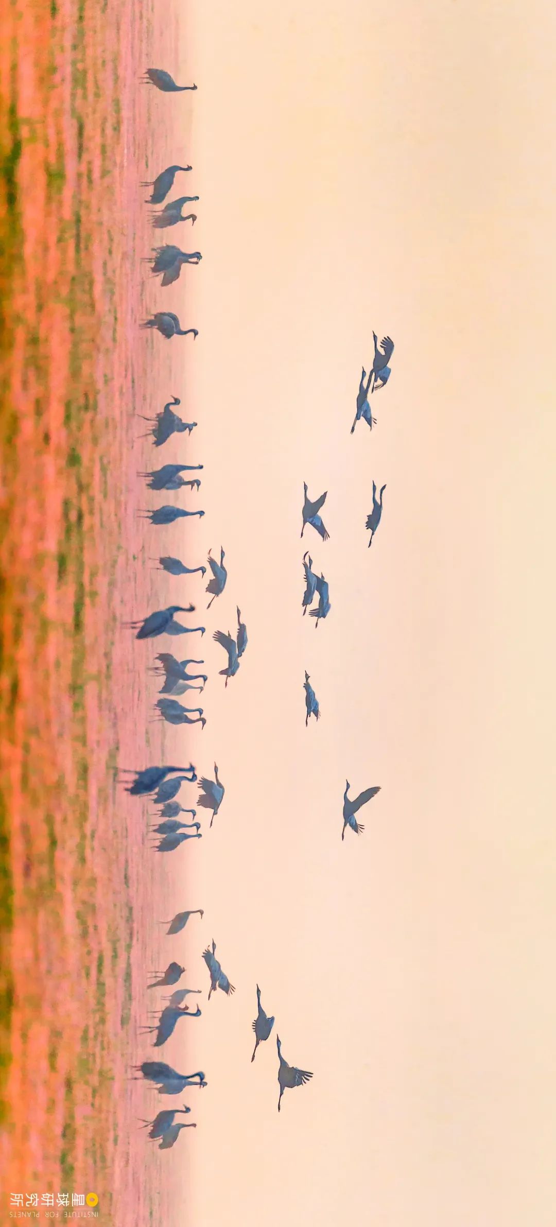 (请横屏观看,江西鄱阳湖湿地的灰鹤,摄影师@张春晓)