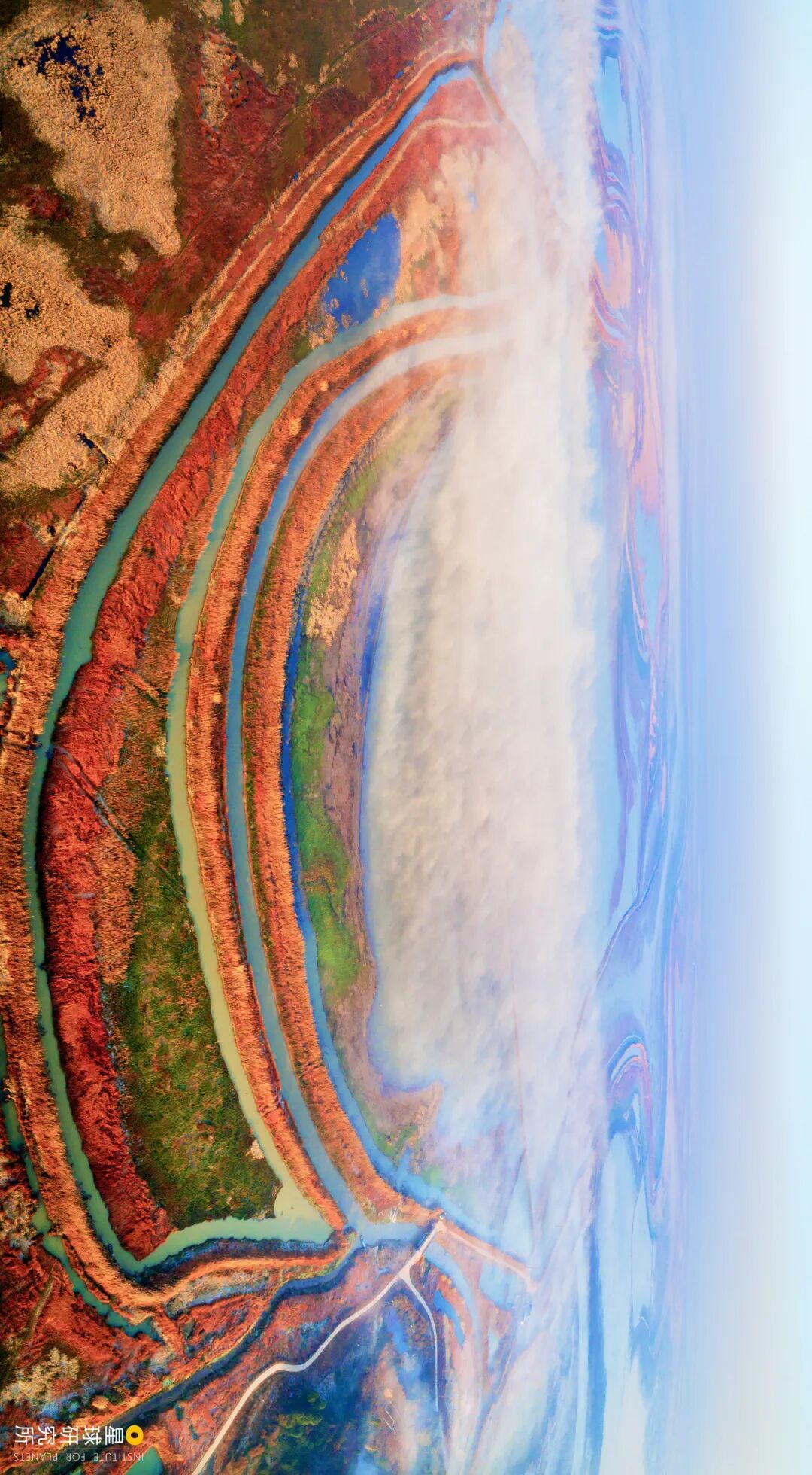 湖面萎缩、蜿蜒细长