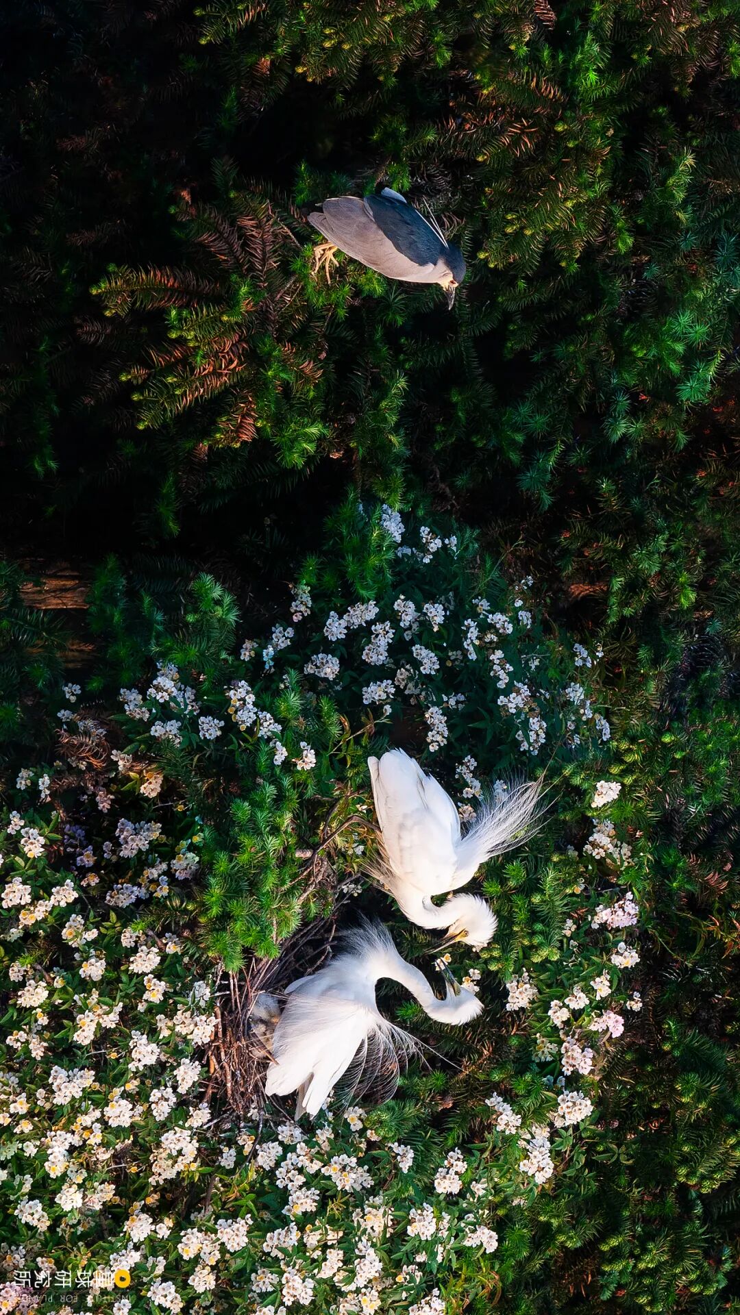 (请横屏观看,夜鹭与一对中白鹭,拍摄于南昌新建区象山森林公园,摄影师@葛红兵)
