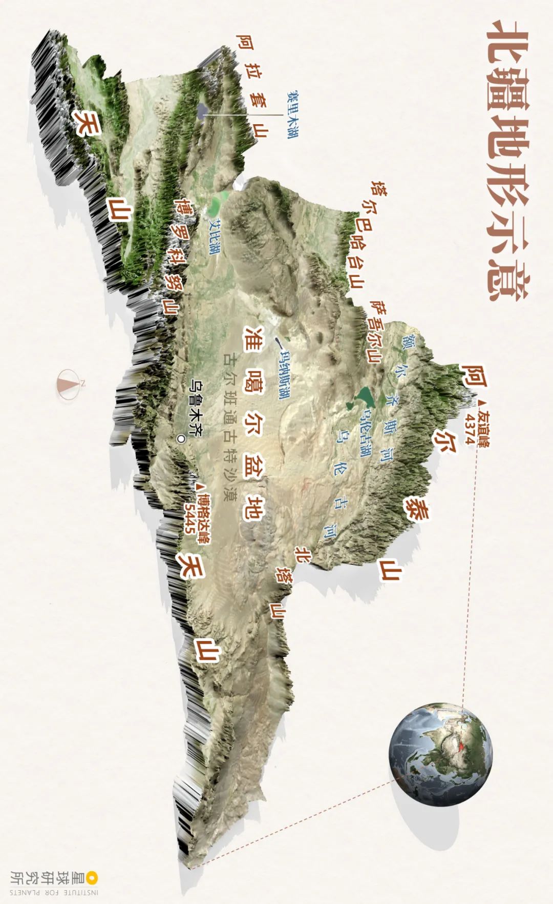 (请横屏观看,北疆地形示意,制图@王申雯&陈志浩/星球研究所)