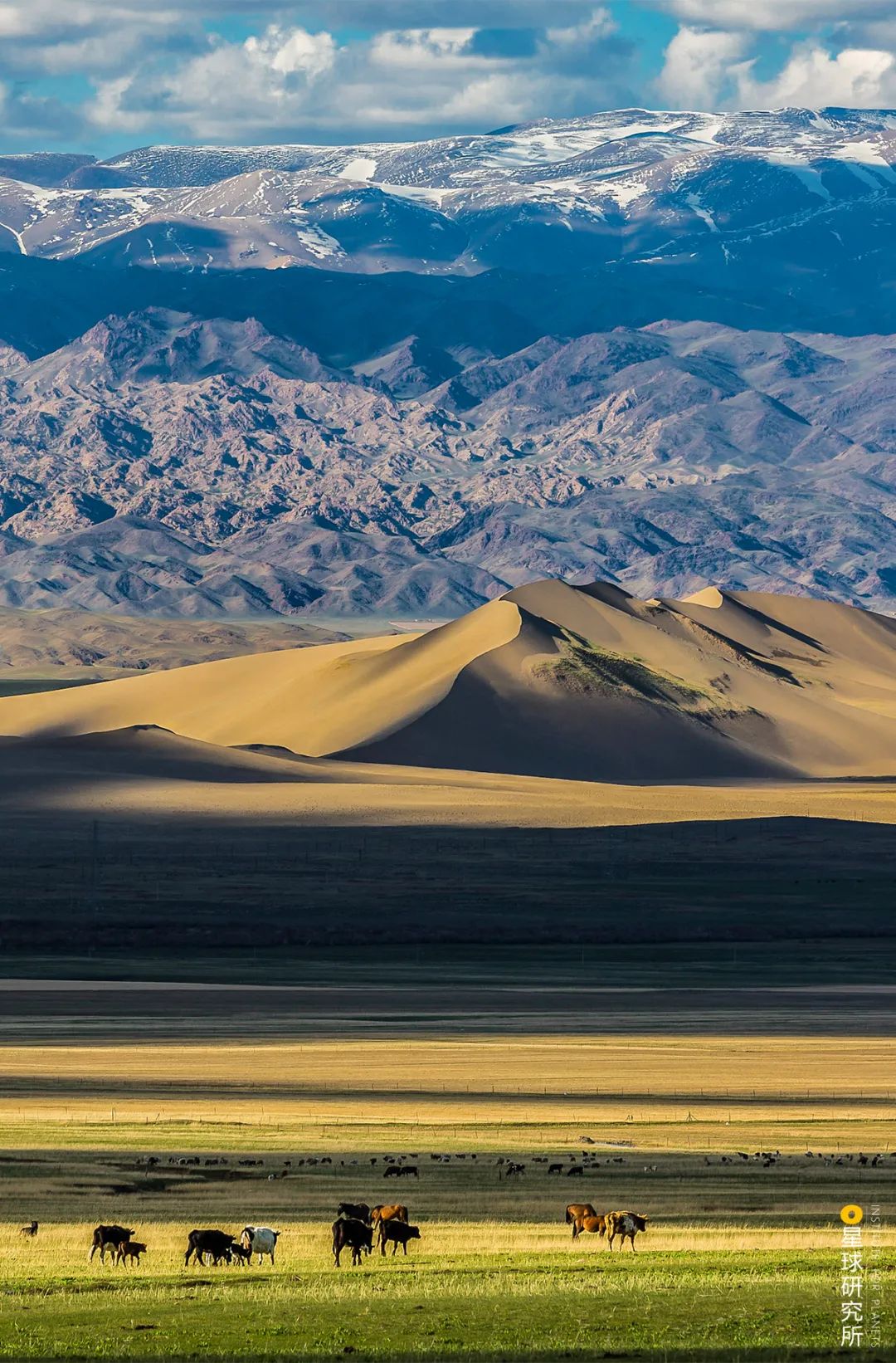 (从巴里坤盆地望向鸣沙山、天山,从近到远逐级上升,层次分明,摄影师@飞翔)