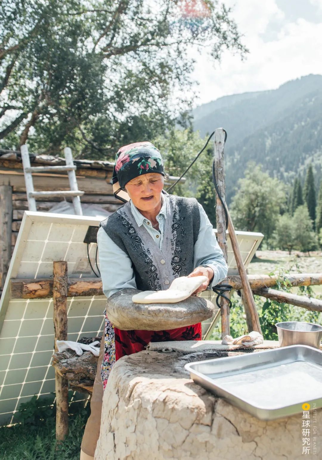 (琼库什台村的哈萨克族老人在做馕,摄影师@梁家进)
