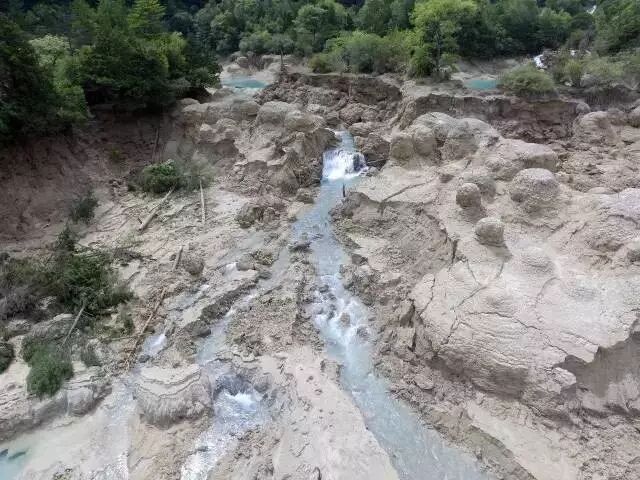 原本色彩斑斓的多个高山湖泊坝体坍塌