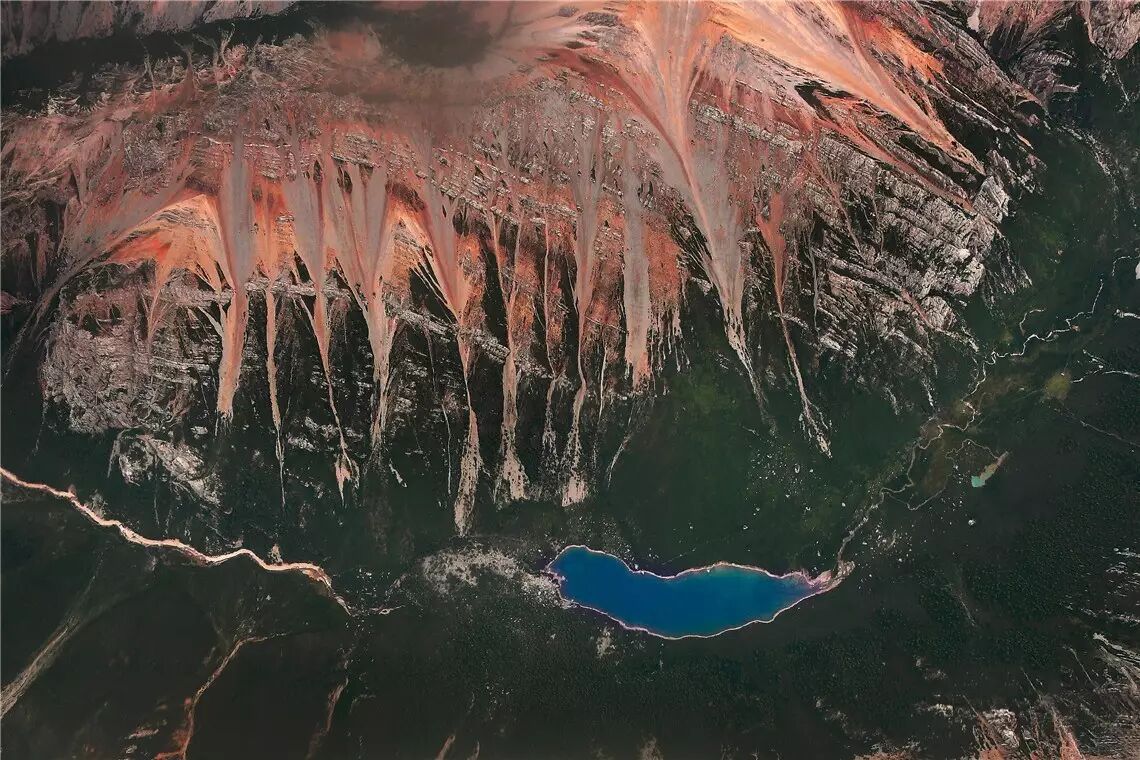 (8月10日西部战区空军出动运-9飞机航拍九寨沟,可以看到滑坡或泥石流在山体上擦出了巨大的痕迹,威胁着下方湛蓝的湖泊;图片源自@中国军网)