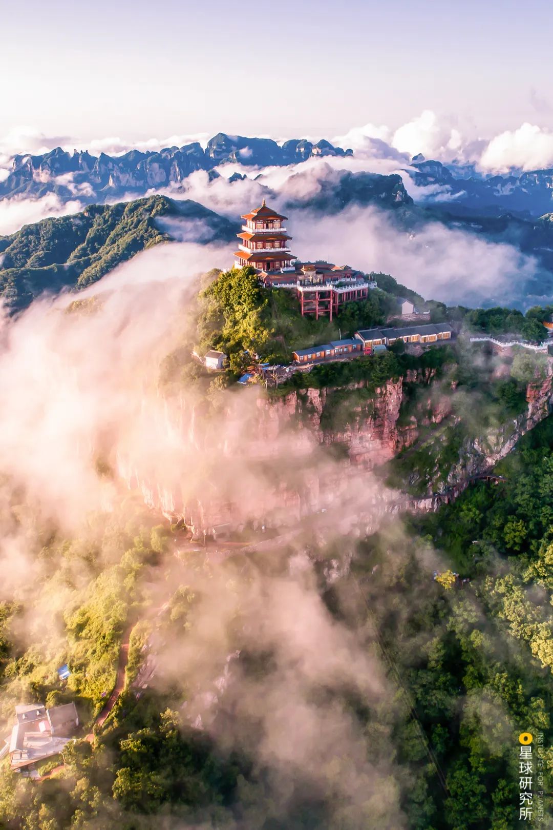 (山西浑源悬空寺位于恒山中的峡谷,摄影师@石耀臣)