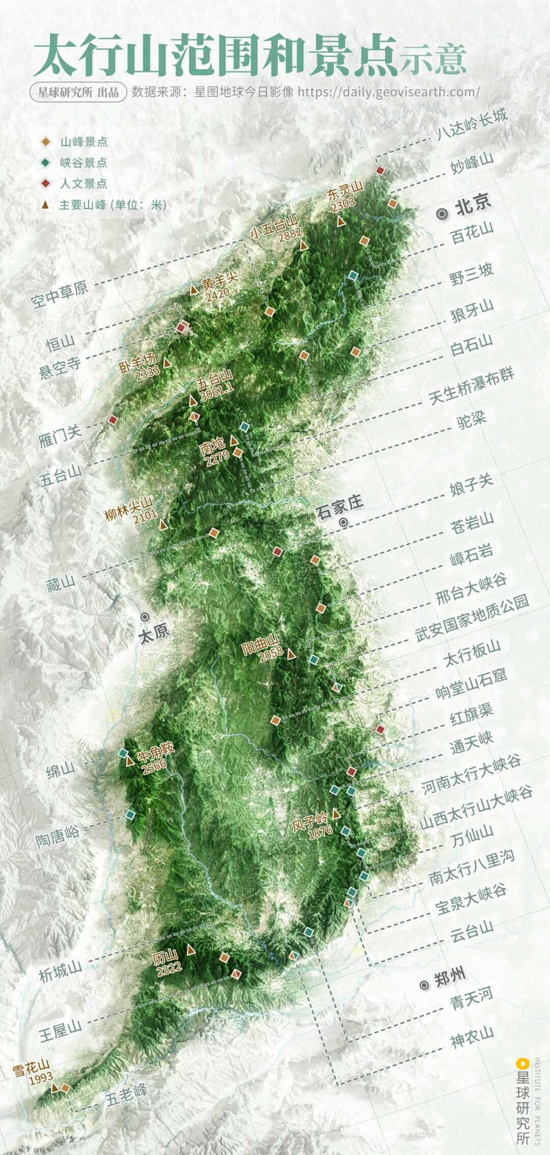 (太行山范围和景点示意,制图@陈景逸/星球研究所)