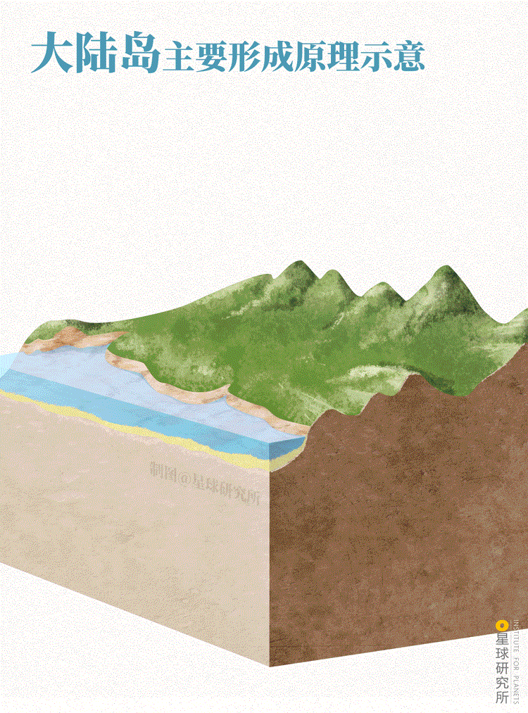 (大陆岛主要形成原理示意图,制图@郑伯容/星球研究所)