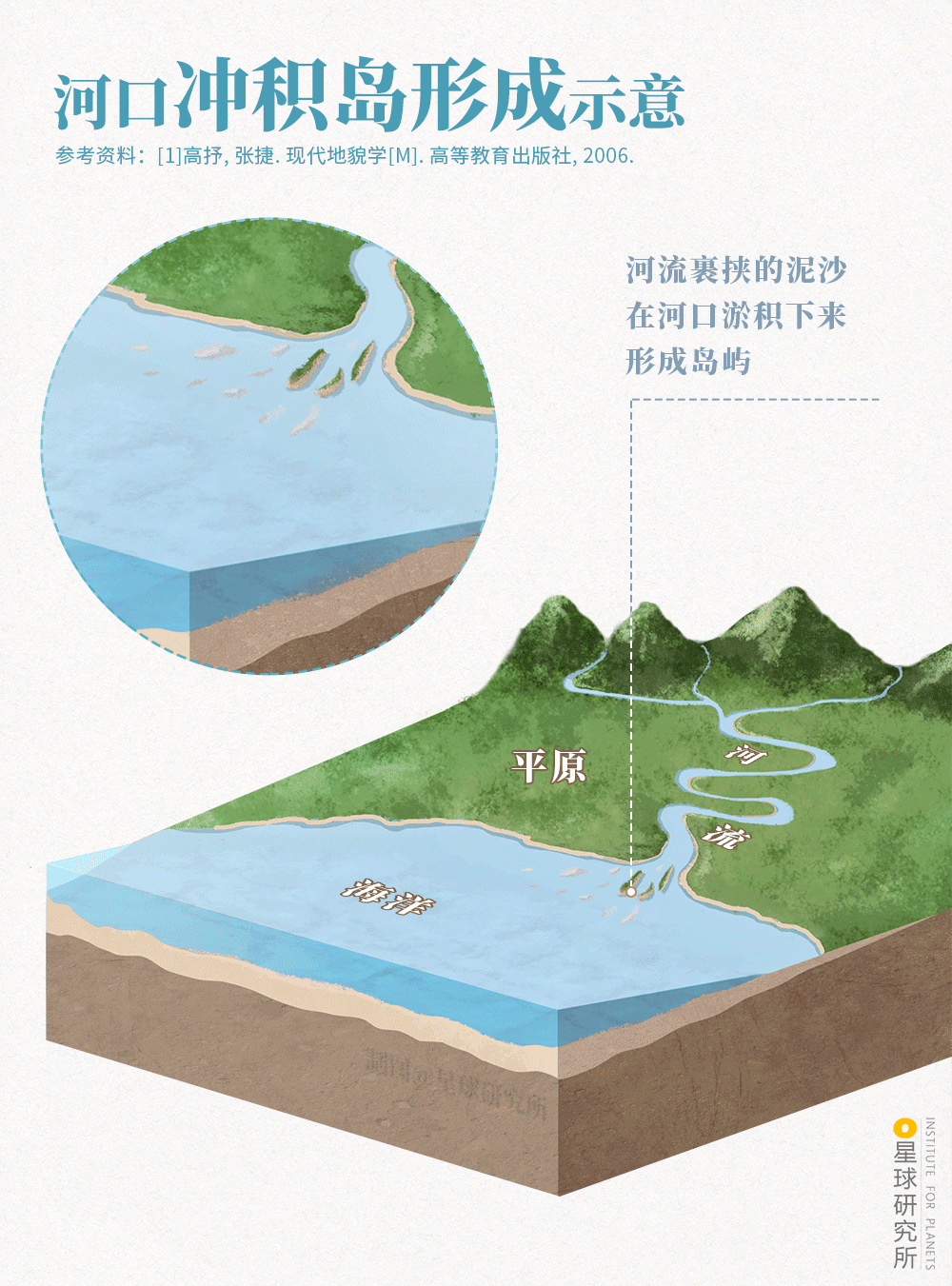 大陆岛、河口冲积岛、火山岛、珊瑚岛礁