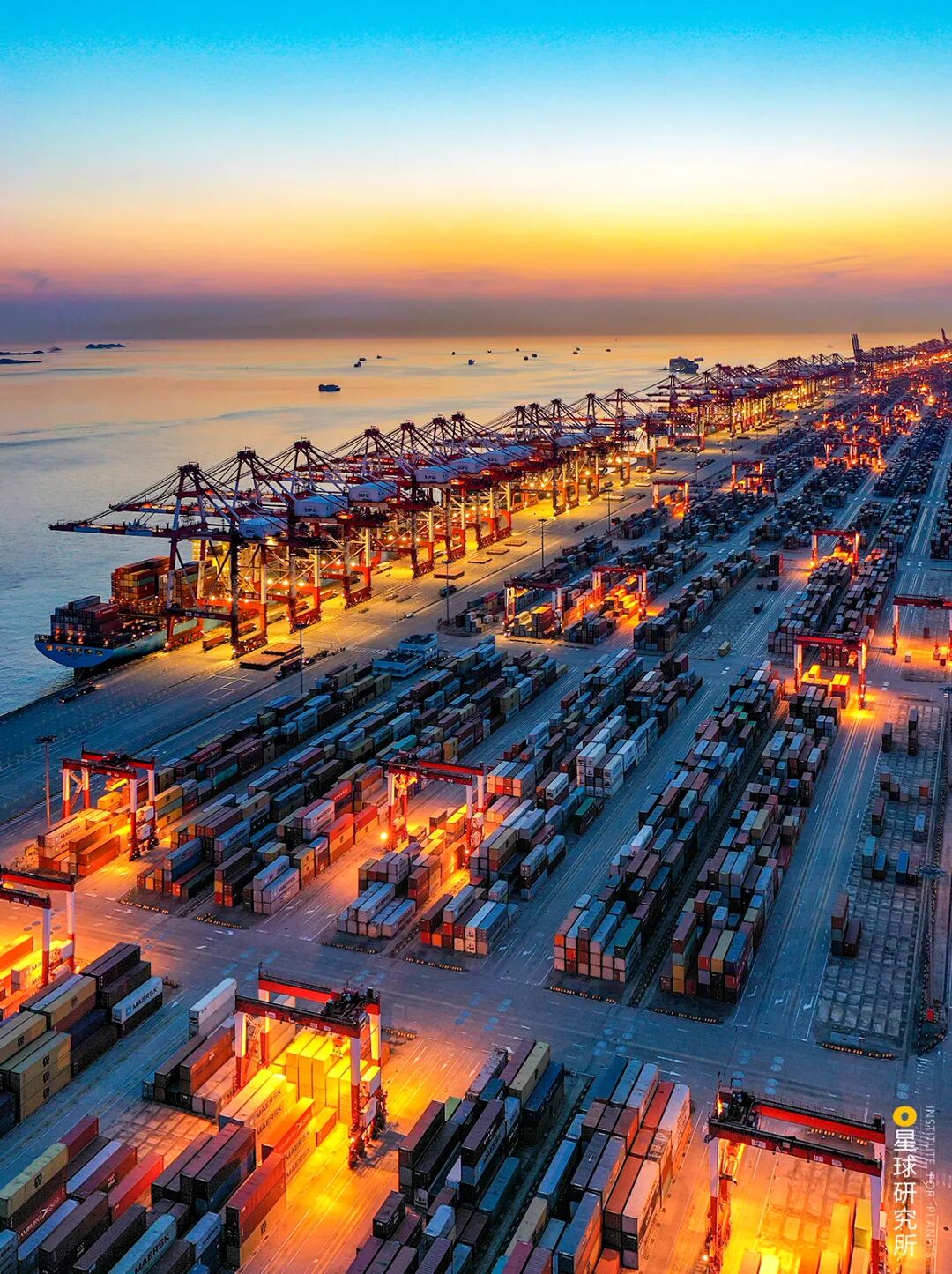 (上海洋山港,位于杭州湾口外的崎岖列岛,是全球最大的智能集装箱码头,摄影师@大徐)