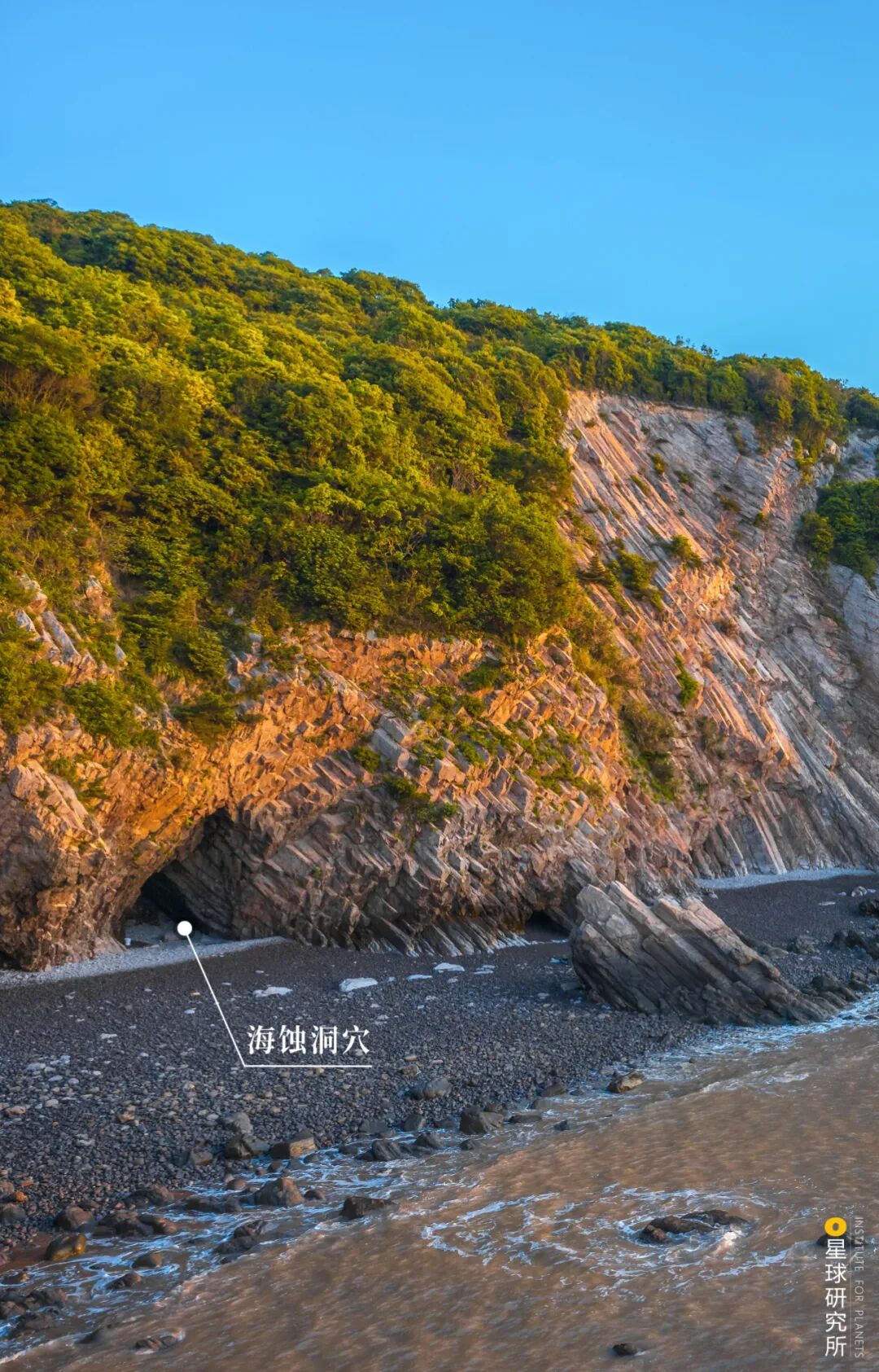 (花岙山岛的海蚀洞穴。岛上多有火山喷出岩的柱状节理景观,形态多样,数量丰富,人称“海上第一石林”,摄影师@石耀臣)