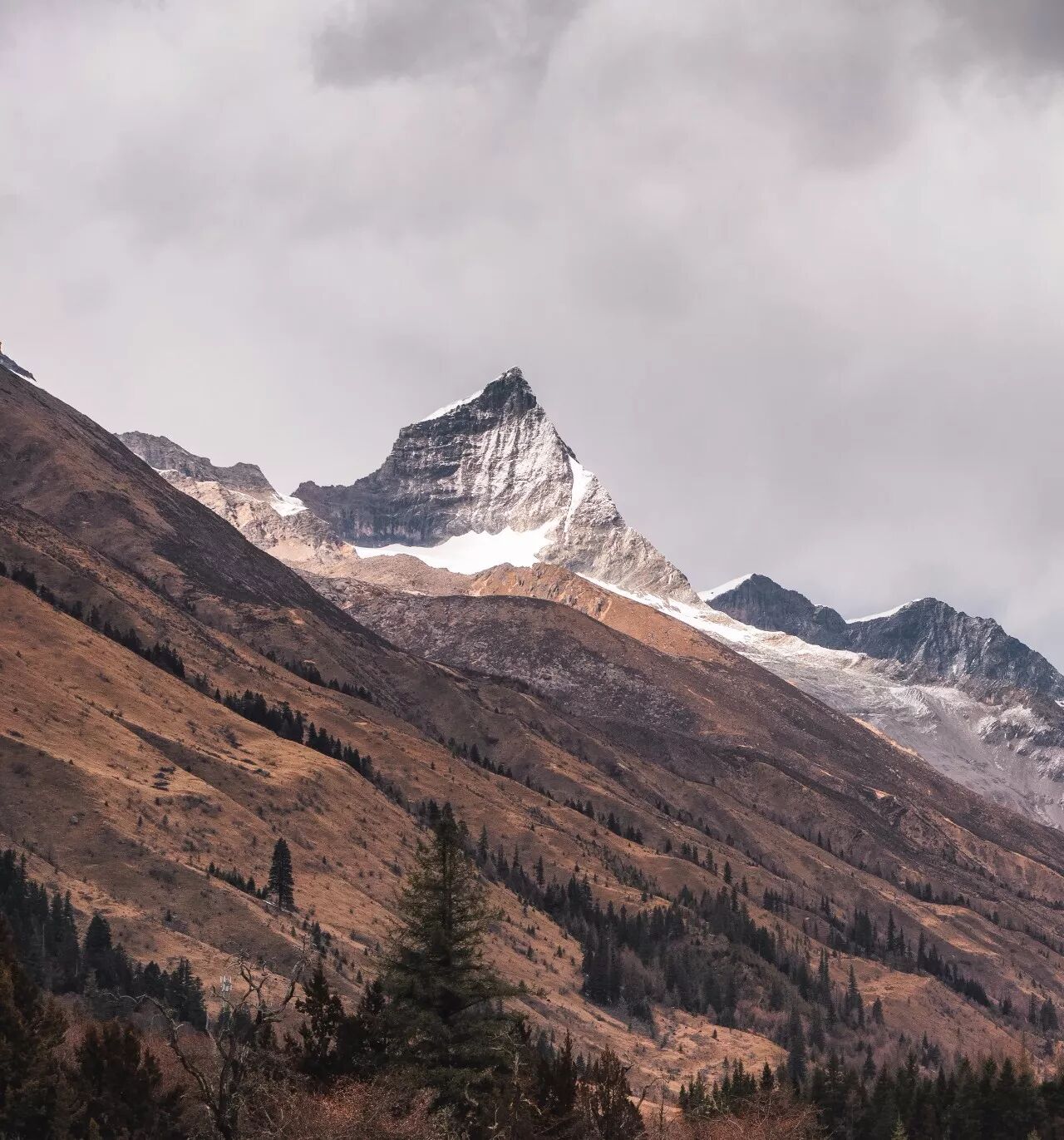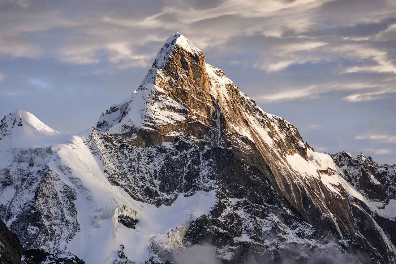 (幺妹峰西北面,左侧雪峰为长沟山,摄影师@大川健三)