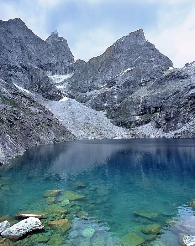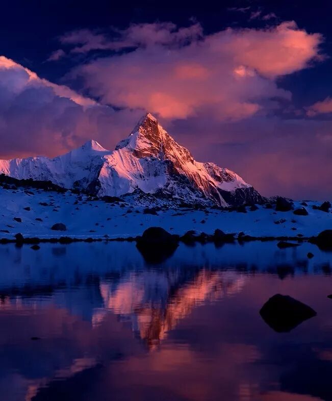 在冰与岩造就的雪山倒影