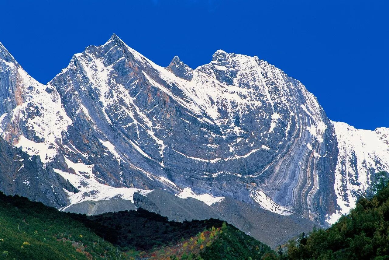(幺妹峰东壁,从成都遥望的即是这一面,摄影师@大川健三)