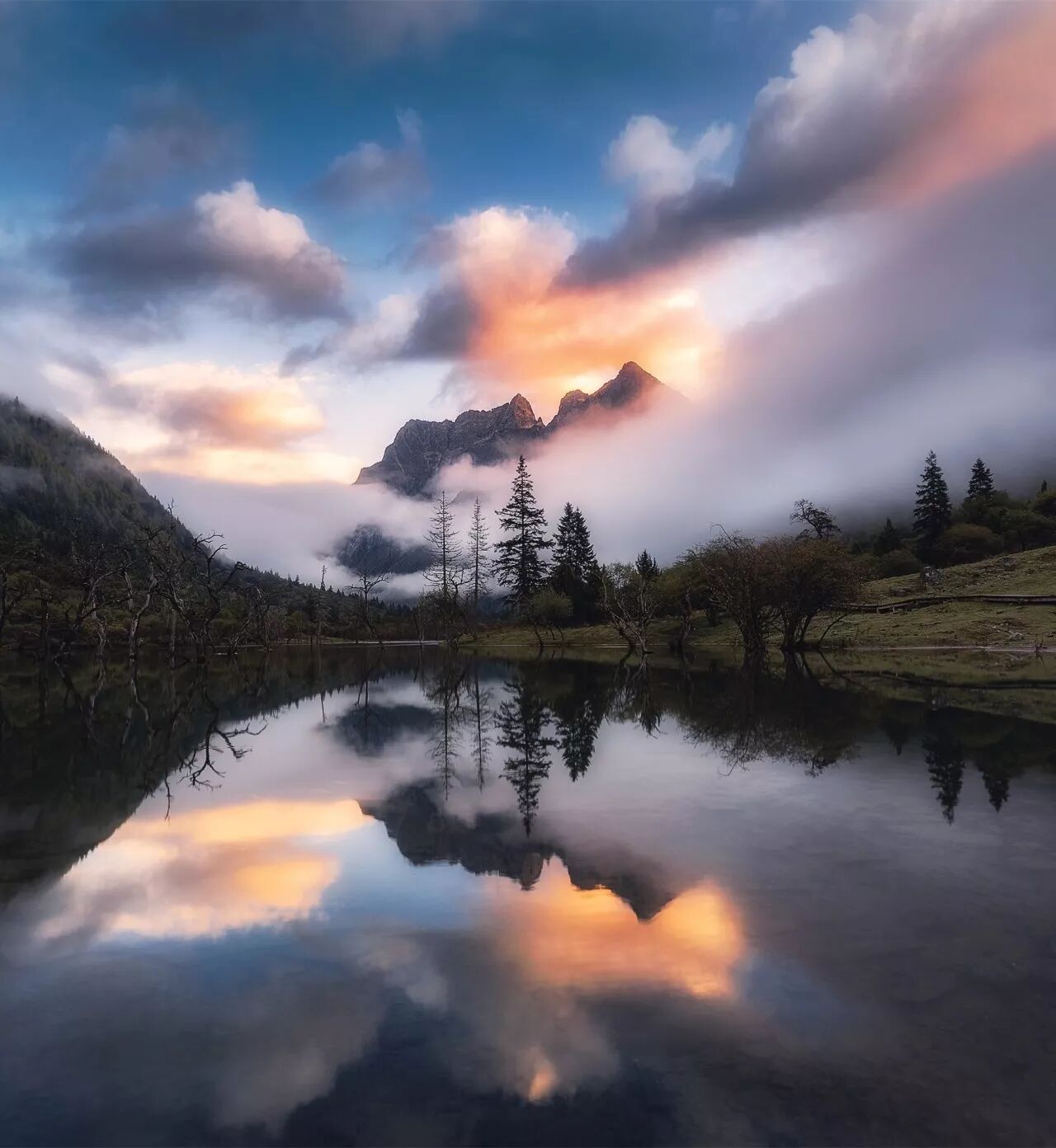 (四姑娜错晚霞倒影,摄影师@高江峰)