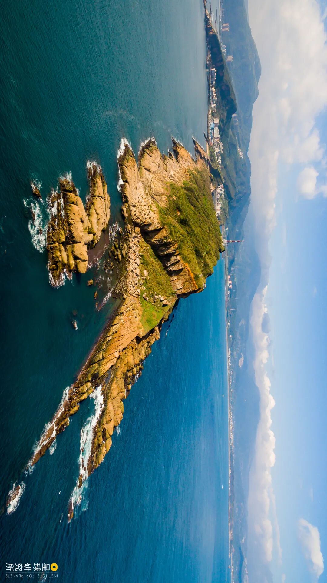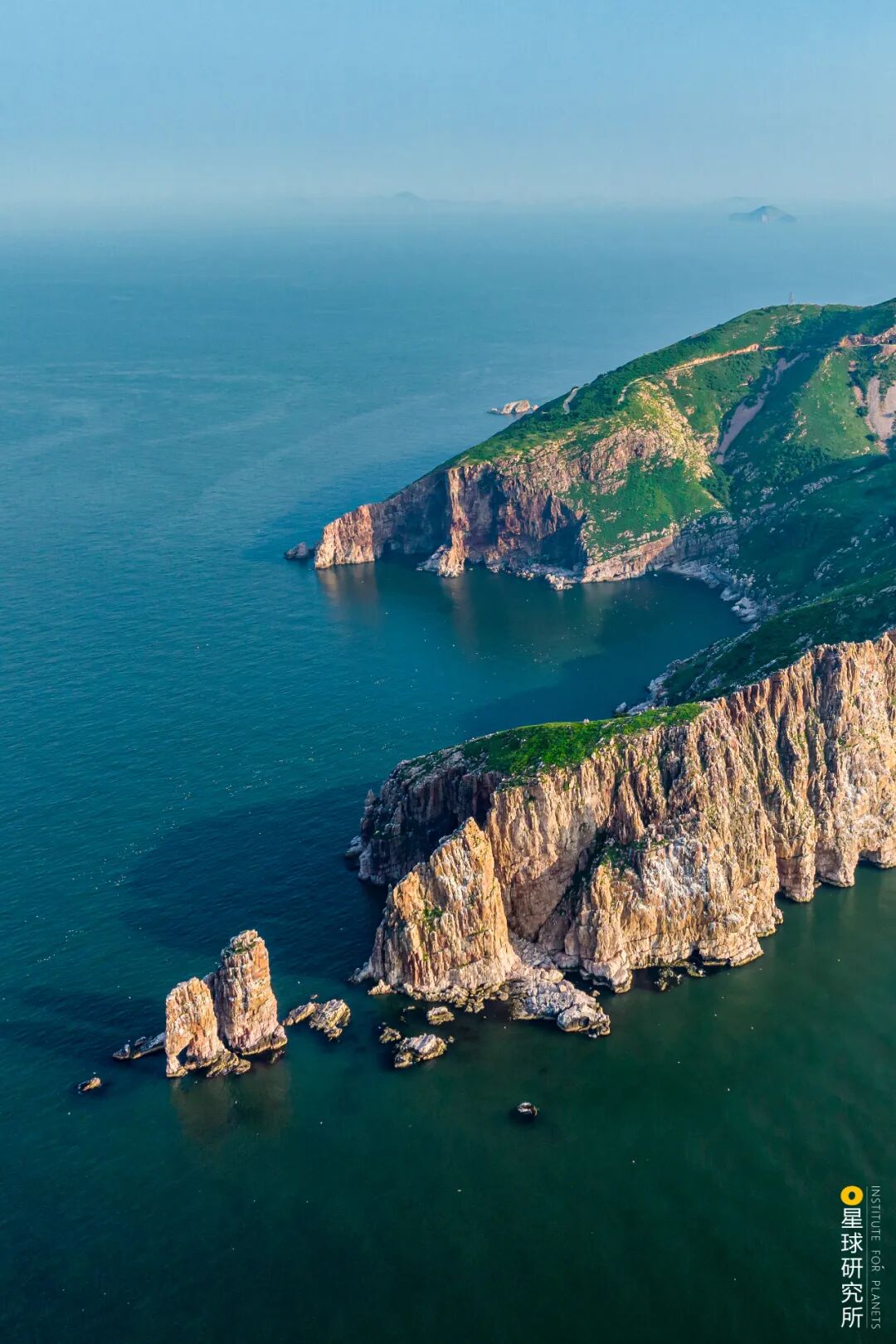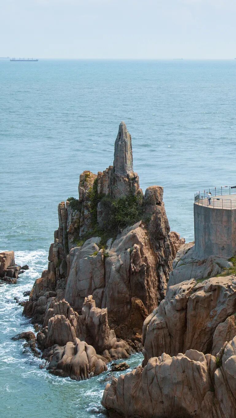 (山东烟台高山岛,最前方为与山体分离的海蚀柱,摄影师@李希根)