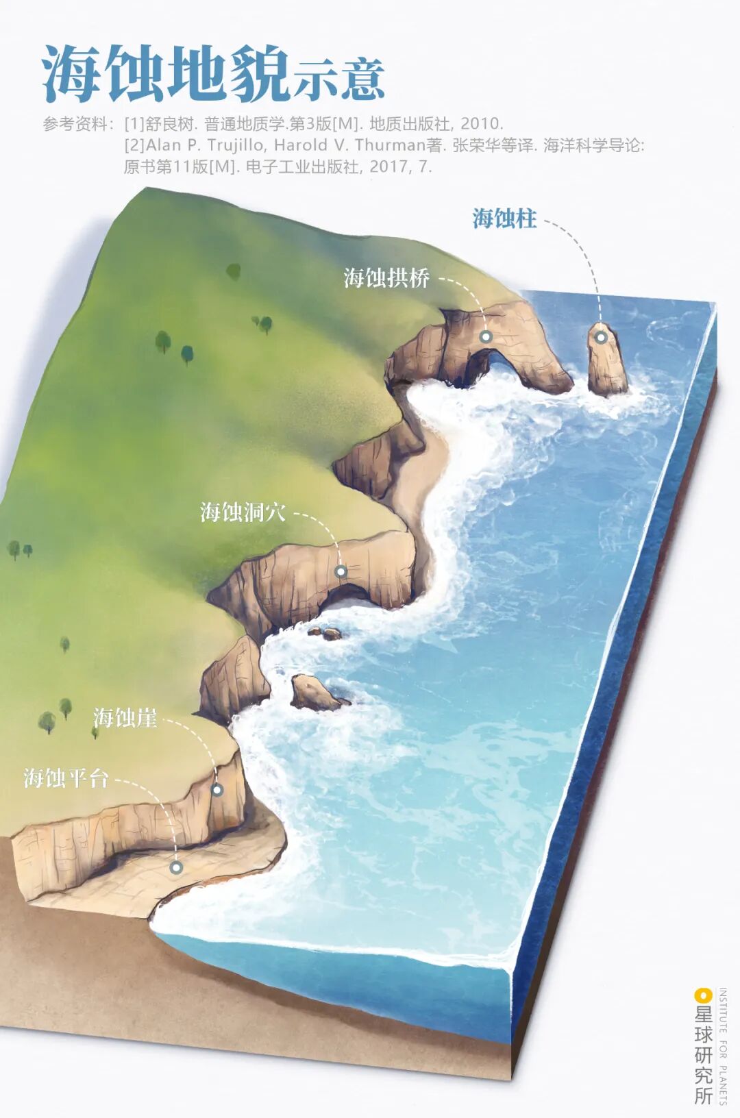 (海蚀地貌示意,制图@杜睿/星球研究所)