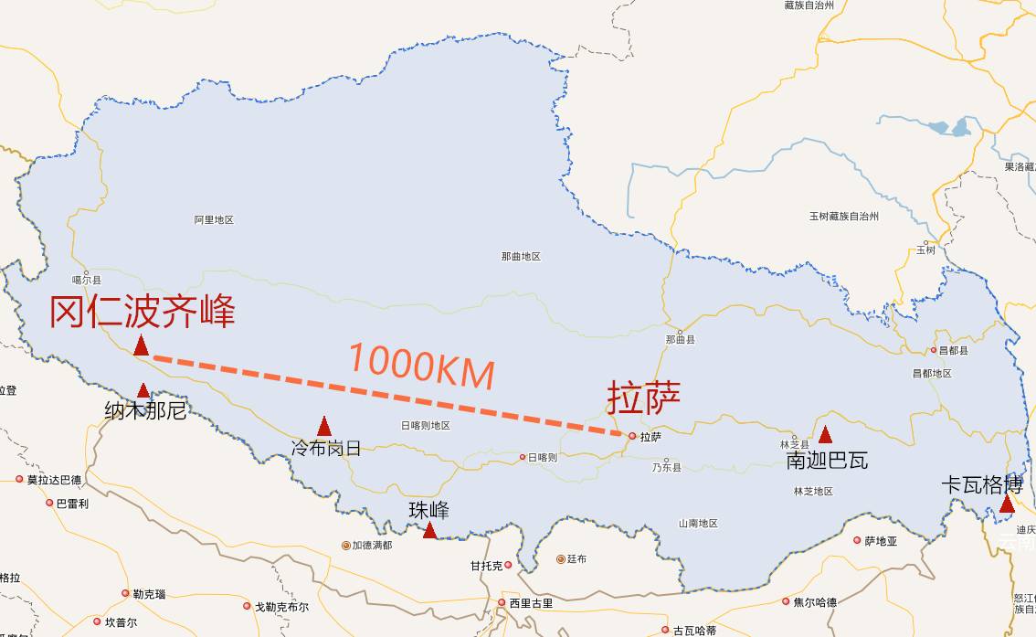 (西藏自治区地图及著名山峰位置,源自@百度地图,星球研究所标注)
