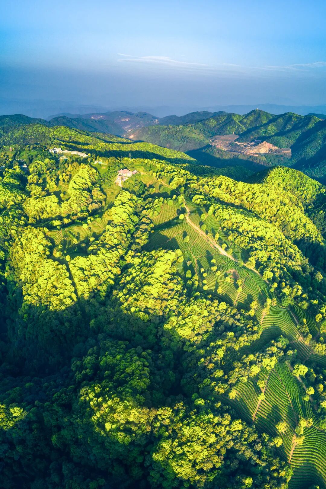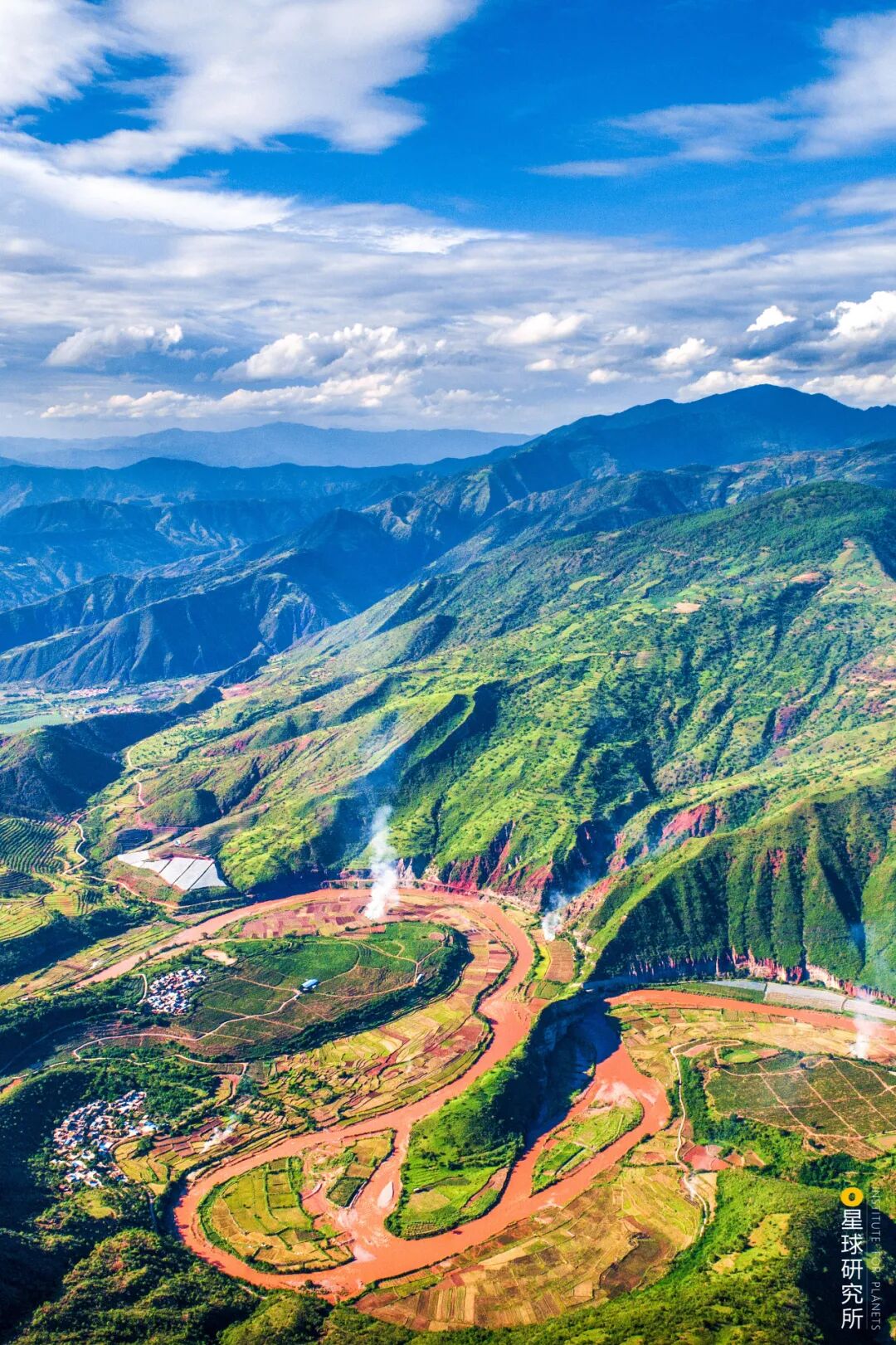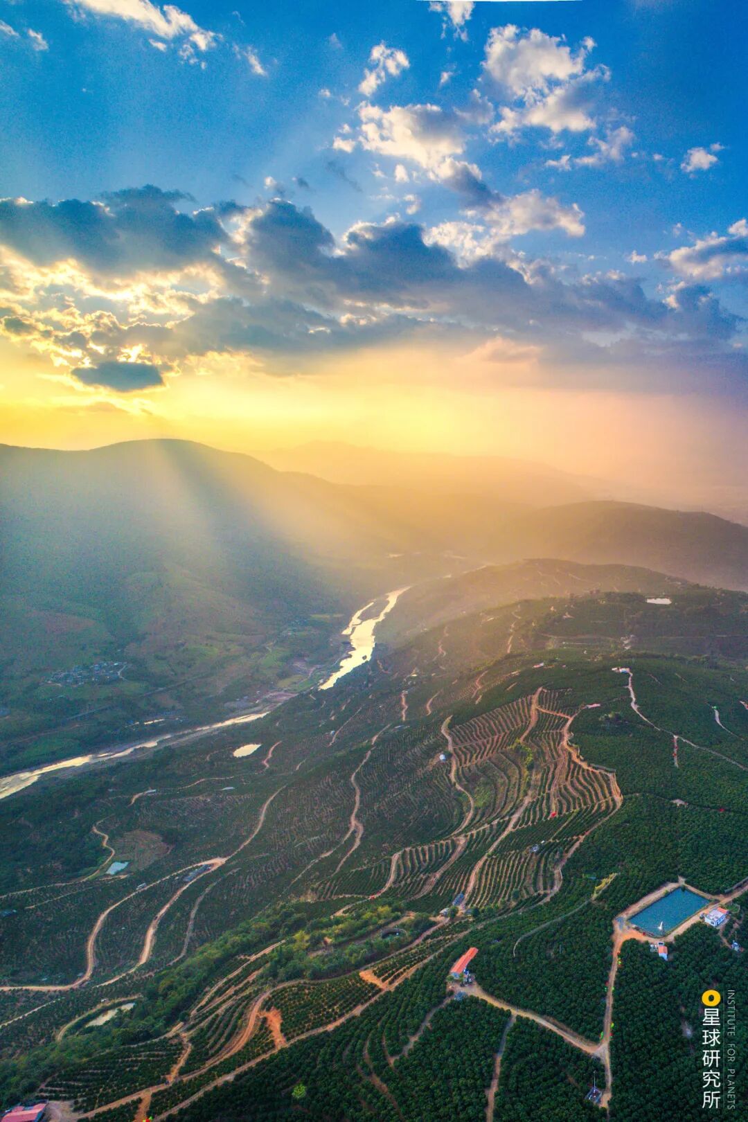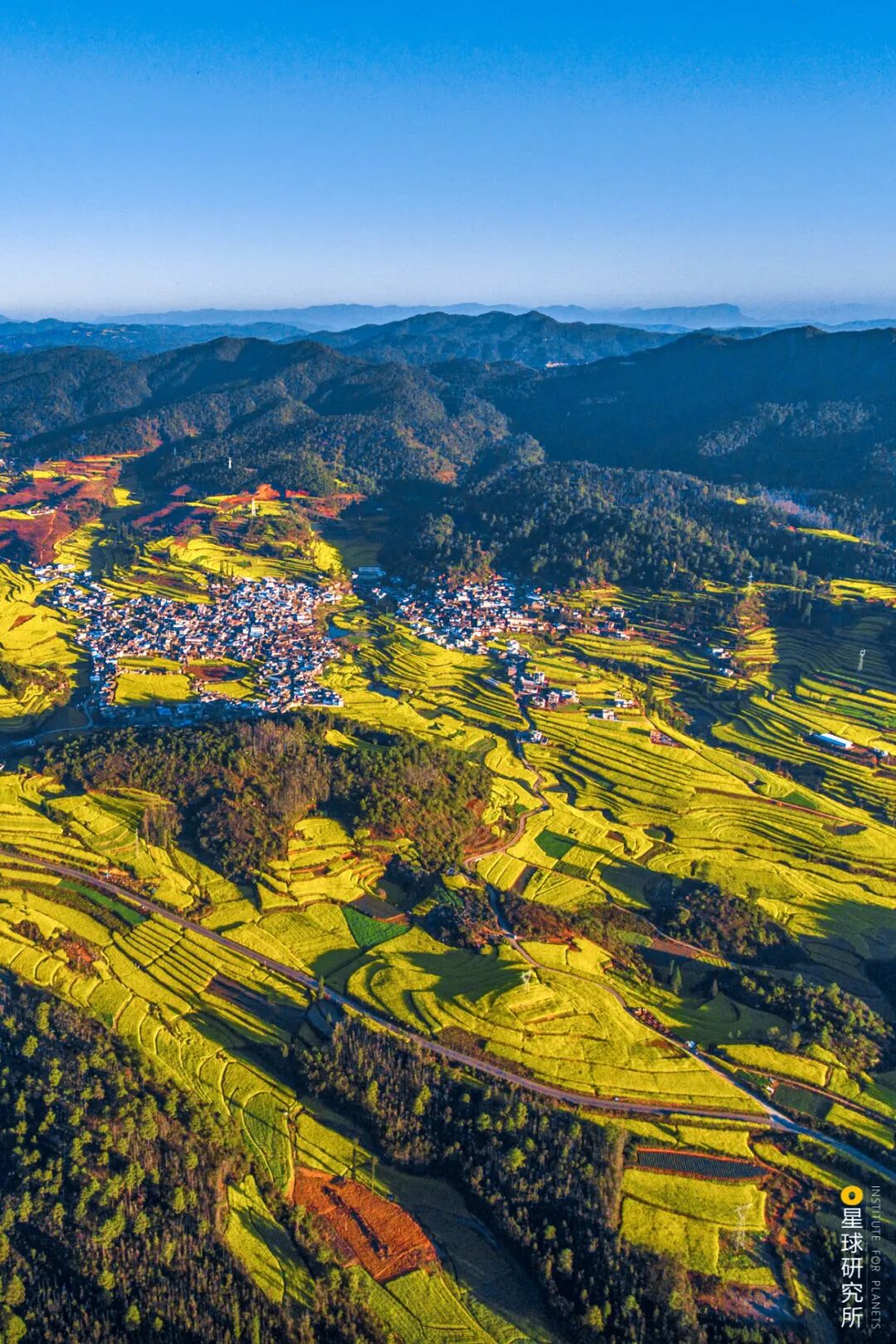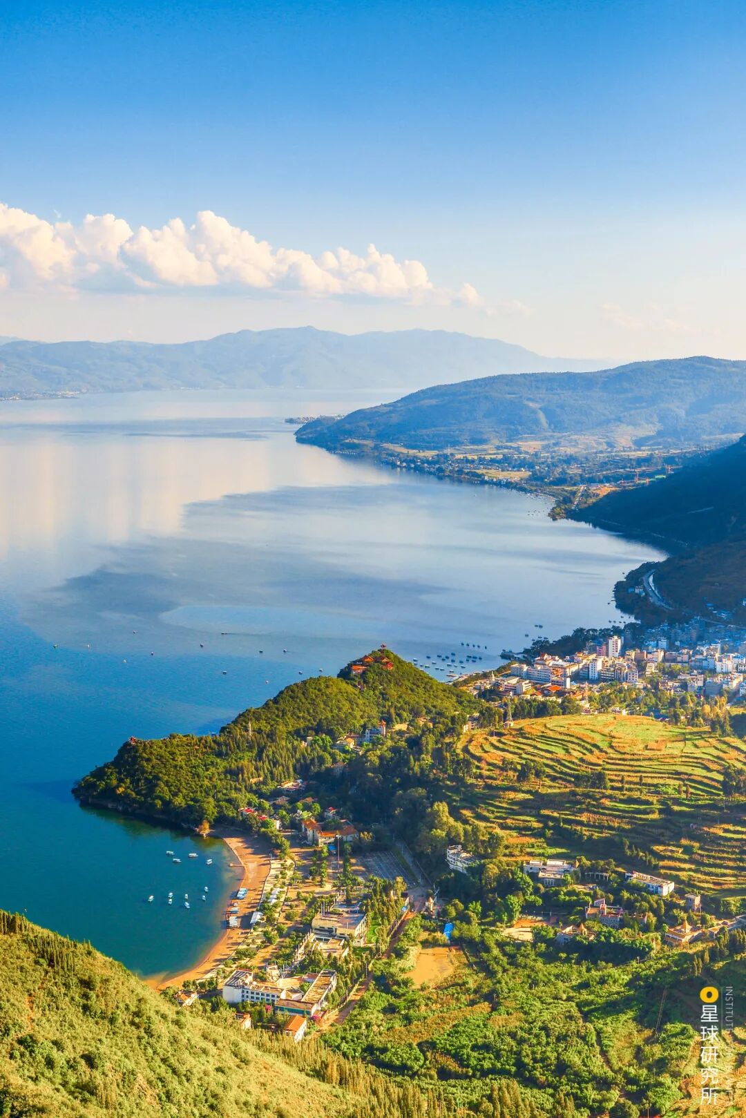 (画面下方为帽天山,此处发现的澄江动物化石群,为寒武纪生命大爆发提供了有力证据,摄影师@崔永江)